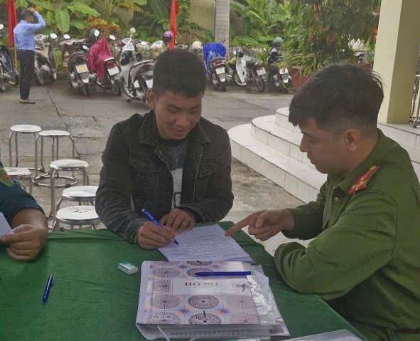 Một số hình ảnh lực lượng Công an xã hỗ trợ công dân kê khai đơn khám sức khỏe và bảo đảm ANTT quá trình khám tuyển