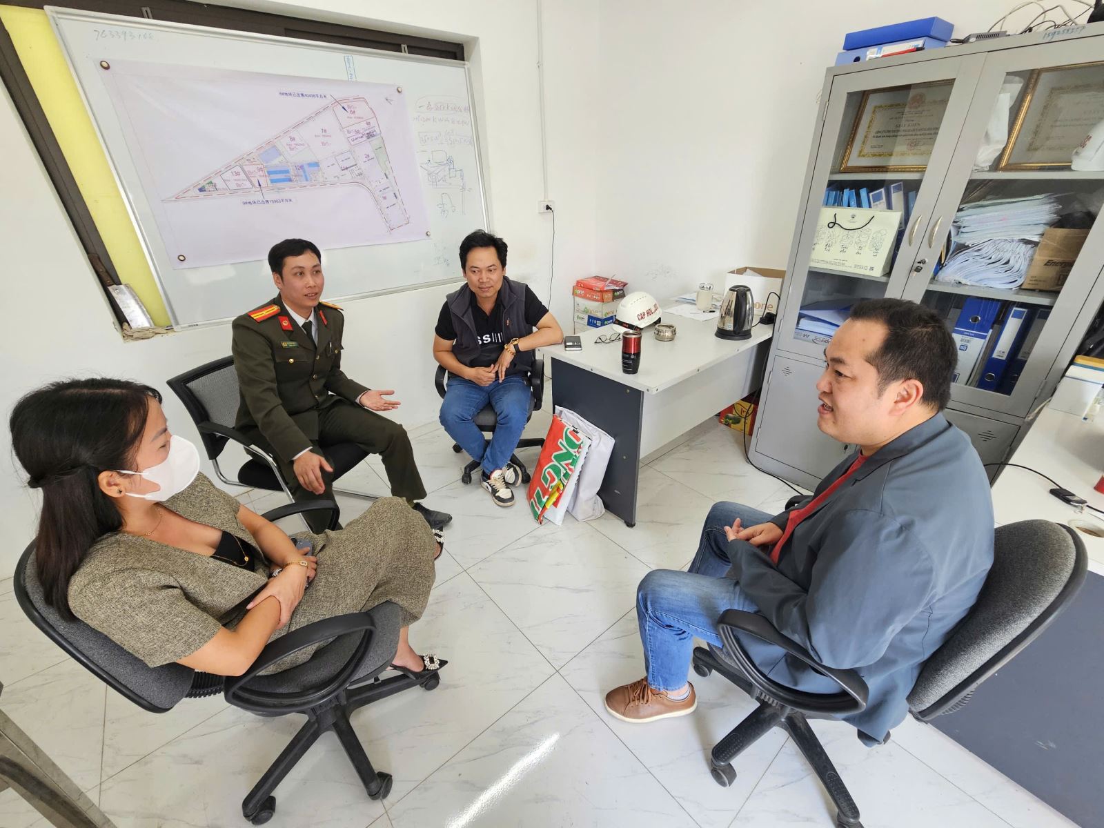 Lực lượng Công an xã làm việc, trao đổi với Ban quản lý cụm Công nghiệp Quý Ninh