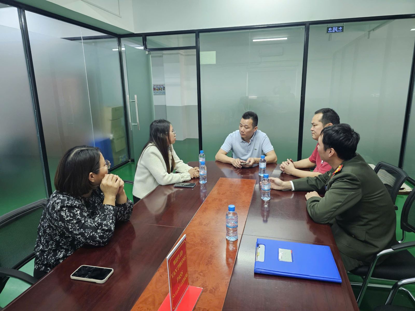 Lực lượng Công an xã Đồng Bằng làm việc, nắm tình hình tại doanh nghiệp trong Cụm Công nghiệp Quý Ninh