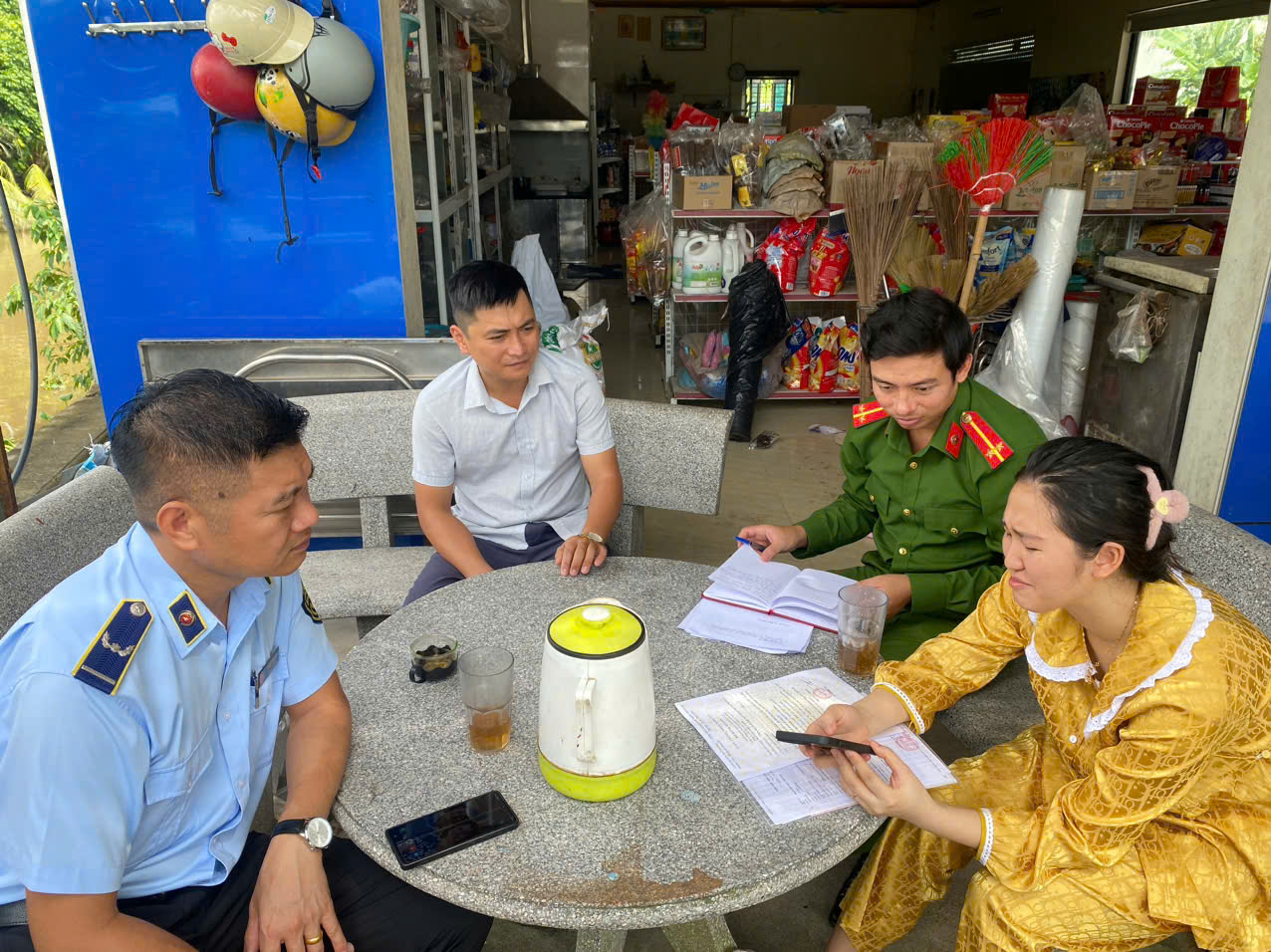 Công an xã Đồng Bằng tỉnh Hưng Yên phối hợp cùng đội Quản lý thị trường số 6 kiểm tra cơ sở kinh doanh trên địa bàn