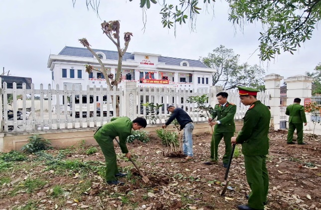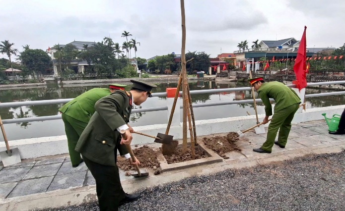 Cán bộ chiến sỹ Công an xã Đồng Bằng hưởng ứng Tết trồng cây