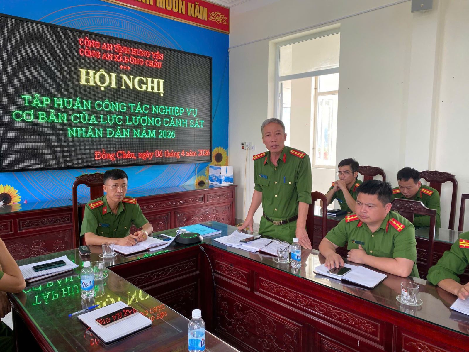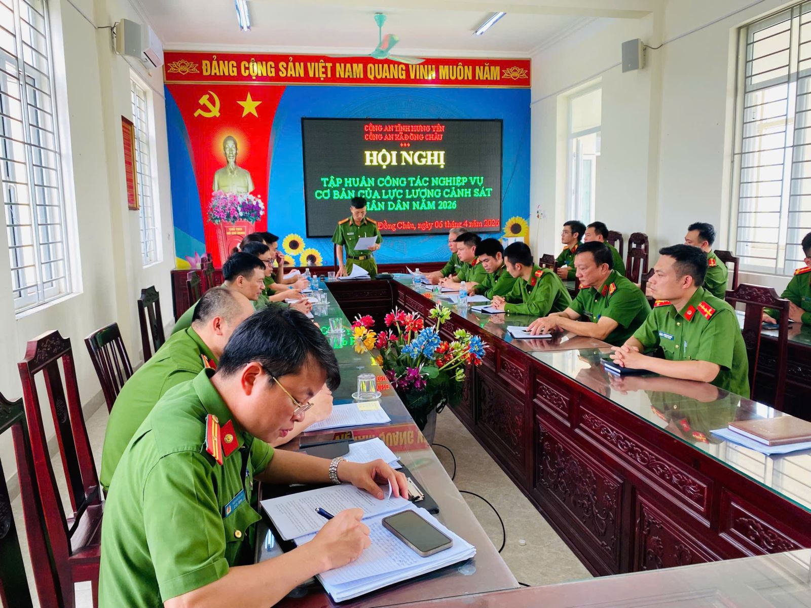 Chiều ngày 07/4/2026, Công an xã Đồng Châu tổ chức hội nghị phổ biến, quán triệt các nội dung liên quan đến công tác nghiệp vụ cơ bản của lực lượng Cảnh sát nhân dân cho toàn thể cán bộ, chiến sĩ trong đơn vị. Hội nghị do đồng chí Trung tá Phan Văn Nhiệm- Phó trưởng Công an xã chủ trì, với sự tham dự của toàn thể cán bộ, chiến sĩ Công an xã.