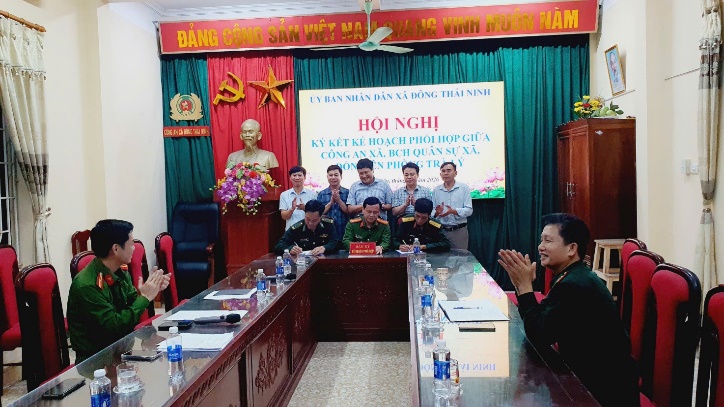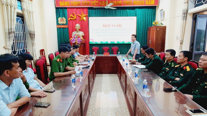 Phát biểu chỉ đạo tại hội nghị, đồng chí Nguyễn Quang Vinh - Phó Bí thư Đảng ủy, Chủ tịch UBND xã yêu cầu sau khi ký Kế hoạch phối hợp, 03 lực lượng Công an, Quân sự, Biên phòng cần phối hợp chặt chẽ, tăng cường các biện pháp, giải pháp nâng cao chất lượng trong phối hợp trao đổi và xác minh thông tin; phối hợp nắm, theo dõi, nhận định, đánh giá, dự báo tình hình thế giới, khu vực, trong nước có liên quan đến lợi ích, an ninh quốc gia; âm mưu, hoạt động chống phá của các thế lực thù địch, phản động; tình hình an ninh mạng, an ninh chính trị nội bộ, an ninh xã hội, an ninh tôn giáo; hoạt động của các loại tội phạm... để có cơ sở báo cáo, tham mưu, đề xuất Thường trực Đảng ủy, lãnh đạo Ủy ban nhân dân xã những giải pháp phù hợp để chỉ đạo, đồng thời đấu tranh làm thất bại âm mưu, hoạt động của các thế lực thù địch, phản động, bảo đảm vững chắc an ninh quốc gia, trật tự, an toàn xã hội, tạo môi trường hòa bình, ổn định để phát triển kinh tế, xã hội ở địa phương.