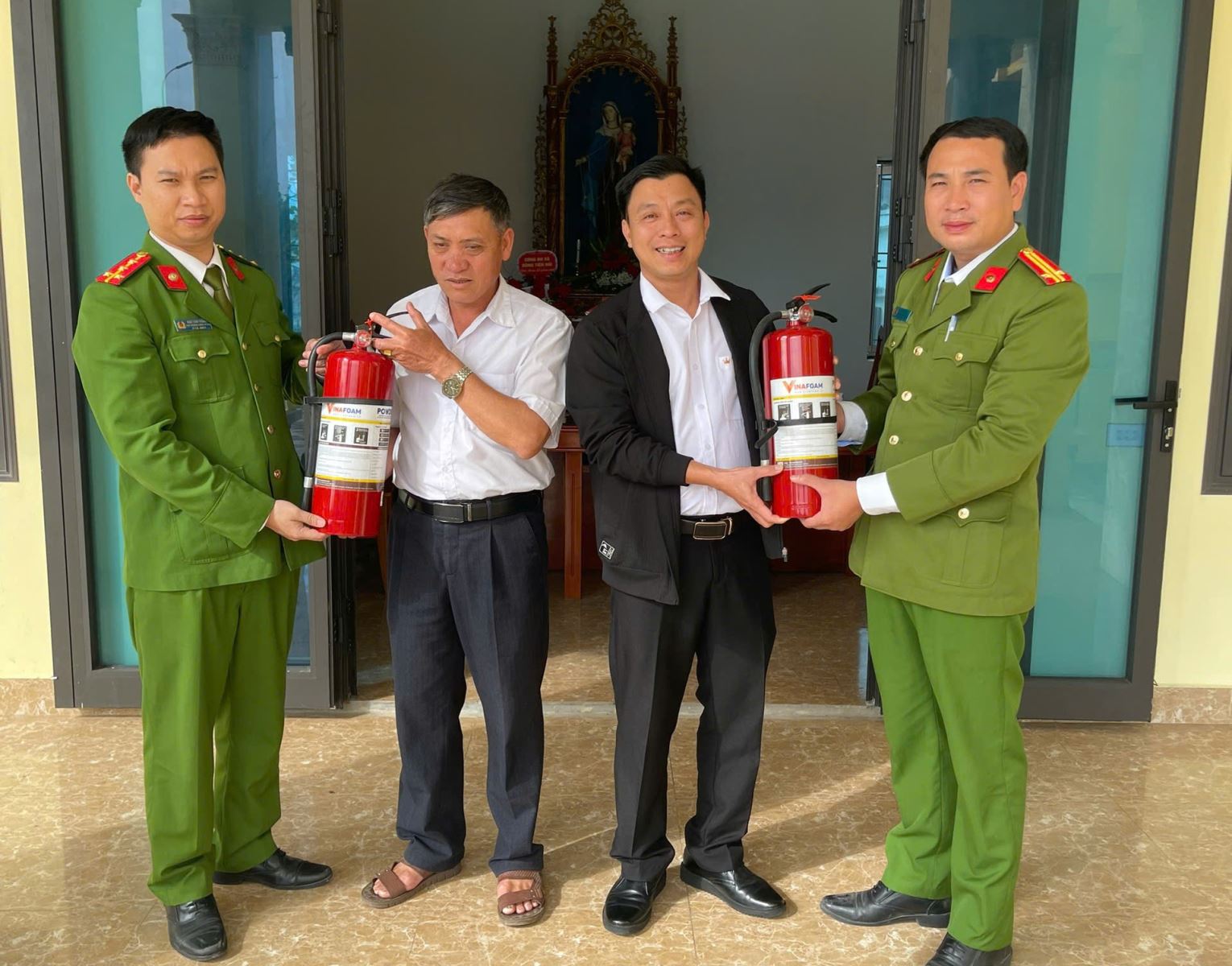 Lãnh đạo Công an xã Đông Tiền Hải chúc mừng, giáo xứ Hưng Long
