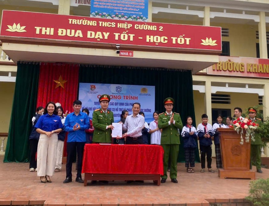 Công an xã và Trường THCS Hiệp Cường 2 ký cam kết phối hợp