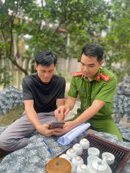 Cán bộ Công an xã Hiệp Cường trực tiếp hướng dẫn người dân thao tác