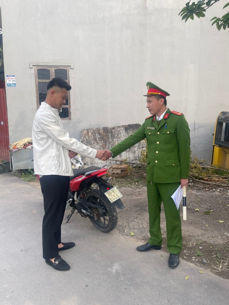 Sau đó, Công an xã Hiệp Cường đã nỗ lực vào cuộc nhanh chóng, truy tìm chủ nhân của phương tiện trên. Bằng các biện pháp nghiệp vụ, Công an xã đã xác định chiếc xe mô tô trên của anh Đoàn Văn Tài, sinh năm 2001, trú tại thôn Trà Lâm, xã Hiệp Cường, tỉnh Hưng Yên là người điều khiển và bỏ quên chiếc xe mô tô trên. Sau khi xác định nguồn gốc và chủ nhân của tài sản, Công an xã Hiệp Cường đã tiến hành trao trả lại tài sản cho anh Đoàn Văn Tài.