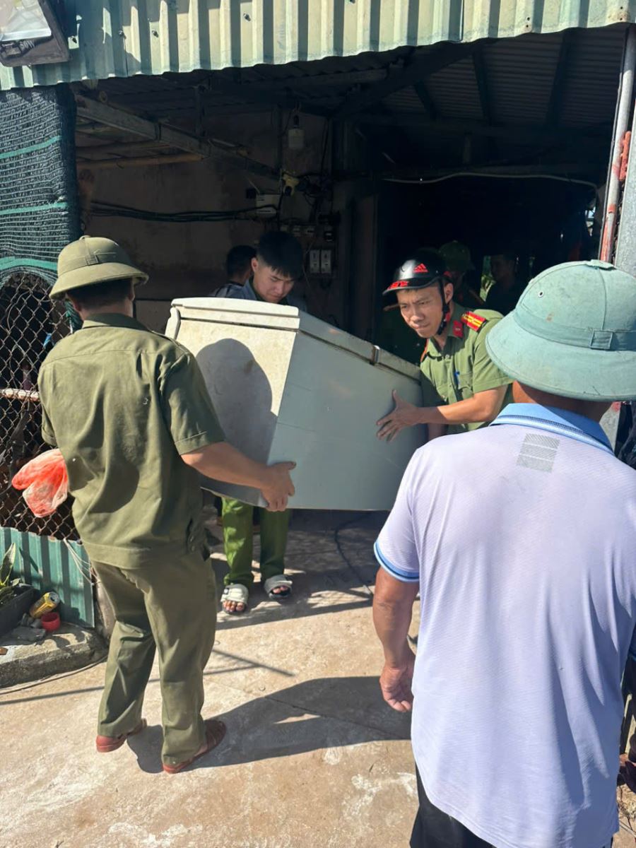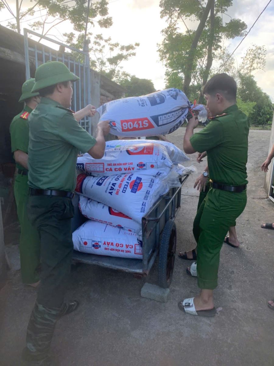 Công an xã Hồng Vũ di dời tài sản của Nhân dân đến nơi an toàn
