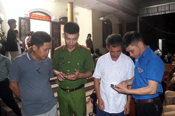 Lực lượng Công an xã cùng cán bộ thôn, đoàn thanh niên tận tình hỗ trợ người dân cài đặt, sử dụng ứng dụng trên điện thoại thông minh, góp phần đưa công nghệ đến gần hơn với đời sống, biến mỗi người dân trở thành một “tai mắt” hỗ trợ lực lượng chức năng trong công tác phòng cháy, chữa cháy.