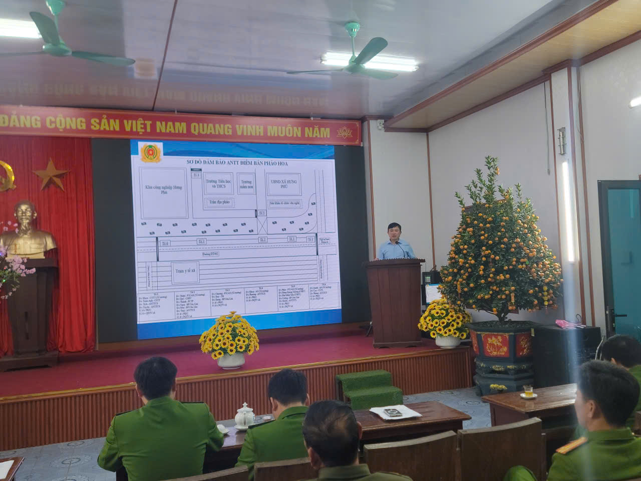 Đồng chí Trưởng Công an xã triển khai kế hoạch bảo đảm ANTT đêm giao thừa