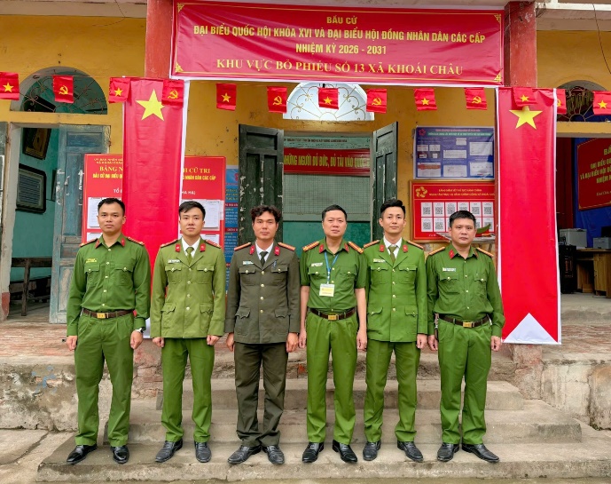 Theo đó, Công an xã Khoái Châu đã chủ động xây dựng kế hoạch, phân công cán bộ, chiến sĩ phối hợp với các lực lượng tham gia công tác bầu cử triển khai các biện pháp bảo đảm an ninh, trật tự tại 6 khu vực bỏ phiếu trên địa bàn xã, gồm: khu vực bỏ phiếu số 13 (Nhà văn hóa thôn Ngọc Nha Hạ), khu vực bỏ phiếu số 9 (Đình Trung Châu), khu vực bỏ phiếu số 19 (Nhà văn hóa thôn Kênh Hạ), khu vực bỏ phiếu số 17 (Nhà văn hóa thôn Thị Tứ), khu vực bỏ phiếu số 04 (Nhà văn hóa thôn Vinh Quang) và khu vực bỏ phiếu số 07 (Nhà văn hóa thôn An Cảnh).