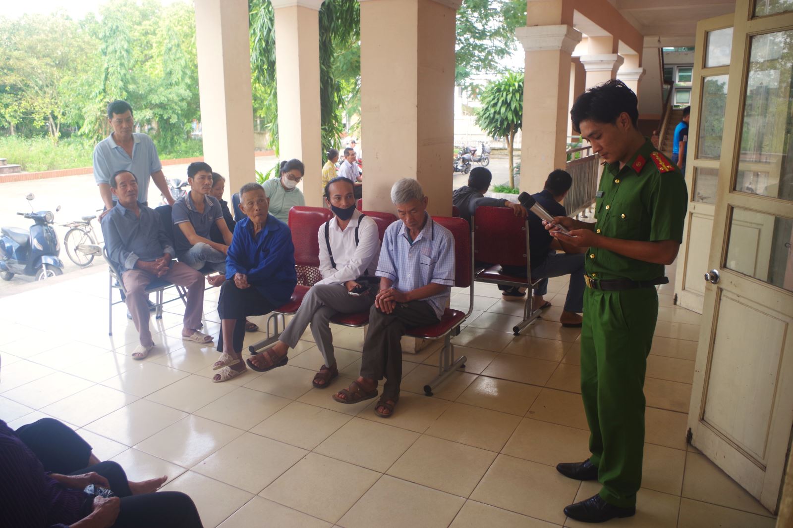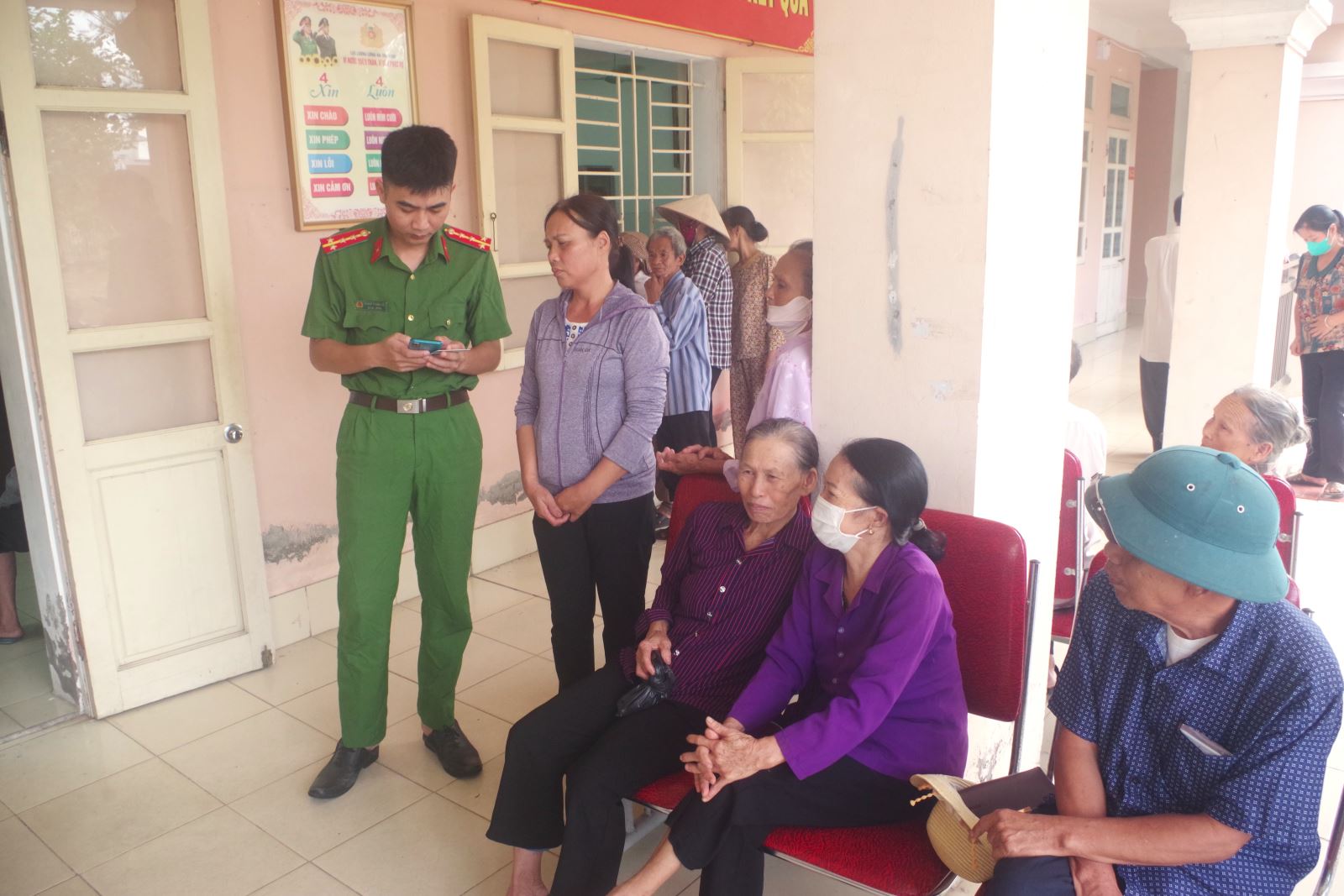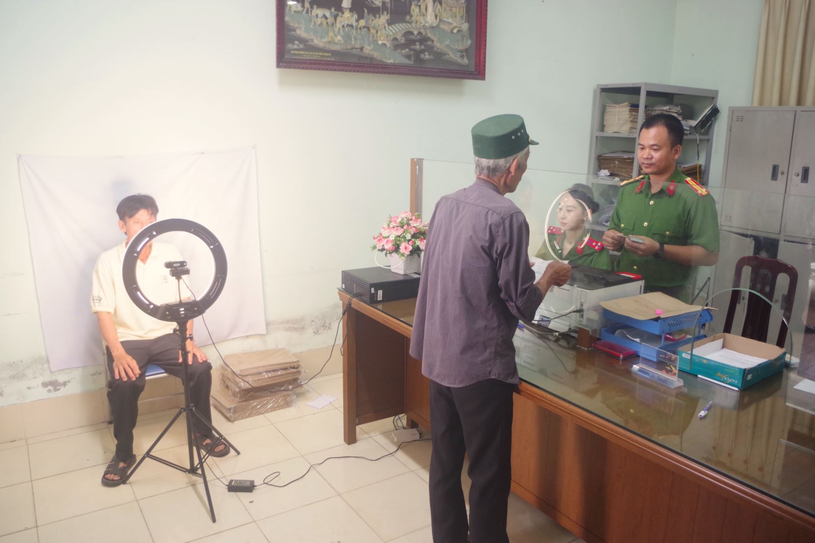 Hình ảnh cán bộ chiến sĩ Công an xã trực tiếp hướng dẫn người dân thủ tục và thao tác đăng ký