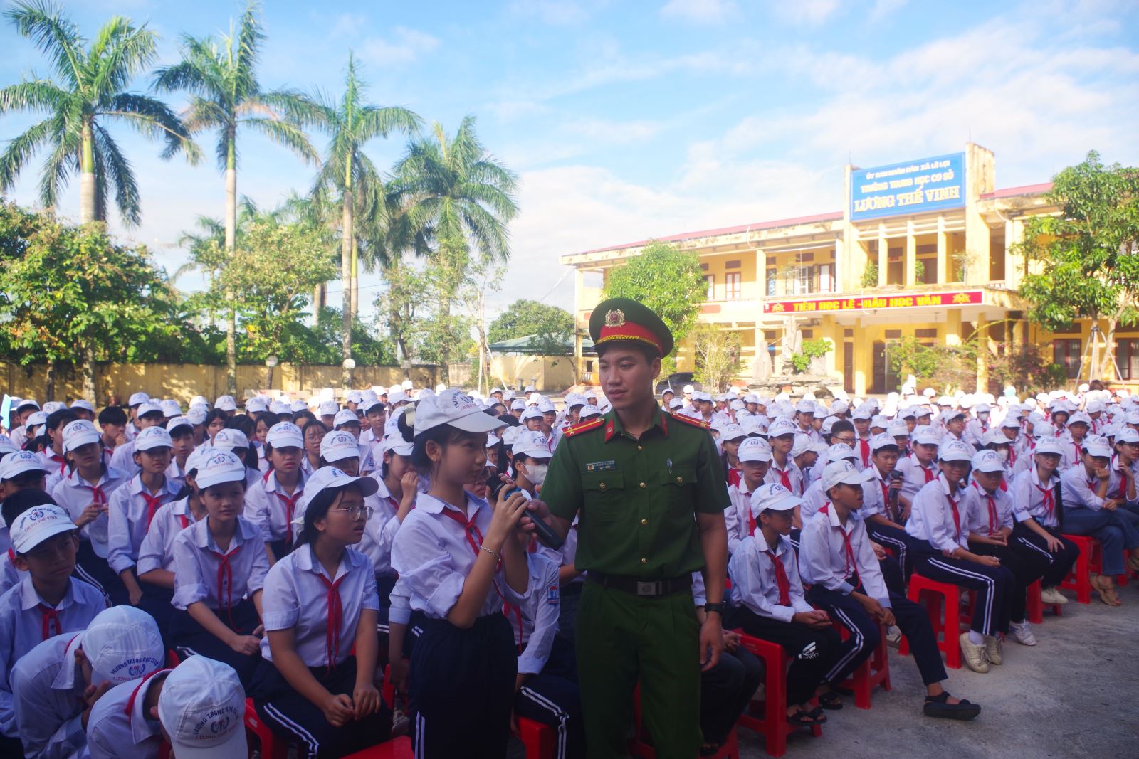 Công an xã Lê Lợi tuyên truyền pháp luật về an toàn giao thông cho các em học sinh