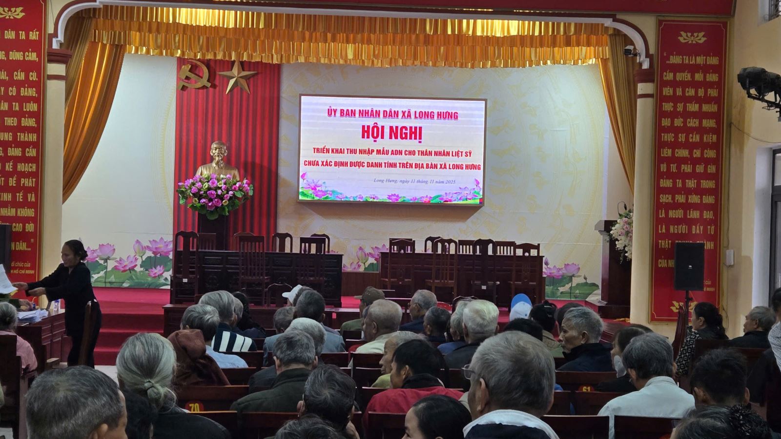 Thực hiện Quyết định của Ủy ban nhân dân tỉnh Hưng Yên về việc phê duyệt danh mục chuyển đổi số của tỉnh năm 2025, trong đó giao Công an tỉnh chủ trì tổ chức thu thập thông tin, mẫu ADN cho thân nhân liệt sĩ chưa xác định được danh tính; căn cứ Kế hoạch của Công an tỉnh Hưng Yên, trong hai ngày 11 và 12/11/2025, Công an xã Long Hưng đã phối hợp với Phòng Cảnh sát quản lý hành chính về trật tự xã hội, Công an tỉnh Hưng Yên và đơn vị chuyên môn tổ chức thu nhận mẫu ADN cho thân nhân liệt sĩ trên địa bàn xã. Buổi thu nhận diễn ra tại trụ sở Đảng ủy xã Long Hưng, có sự tham gia của thân nhân liệt sĩ, đại diện các ban, ngành, đoàn thể và lực lượng Công an xã, đảm bảo an toàn, trang nghiêm, chu đáo.