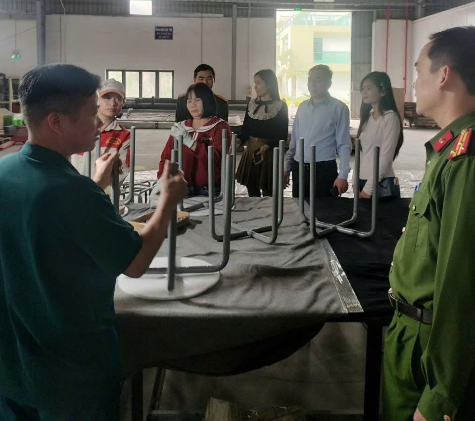 Công an xã nắm tình hình tại khu vực sản xuất Công ty TNHH Nội thất Ngũ Kim Guo Hao
