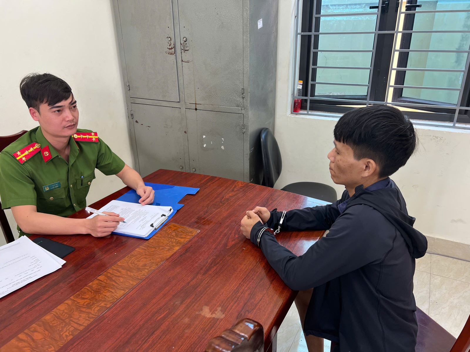 Đối tượng Hoàng Thế Anh tại cơ quan Công an