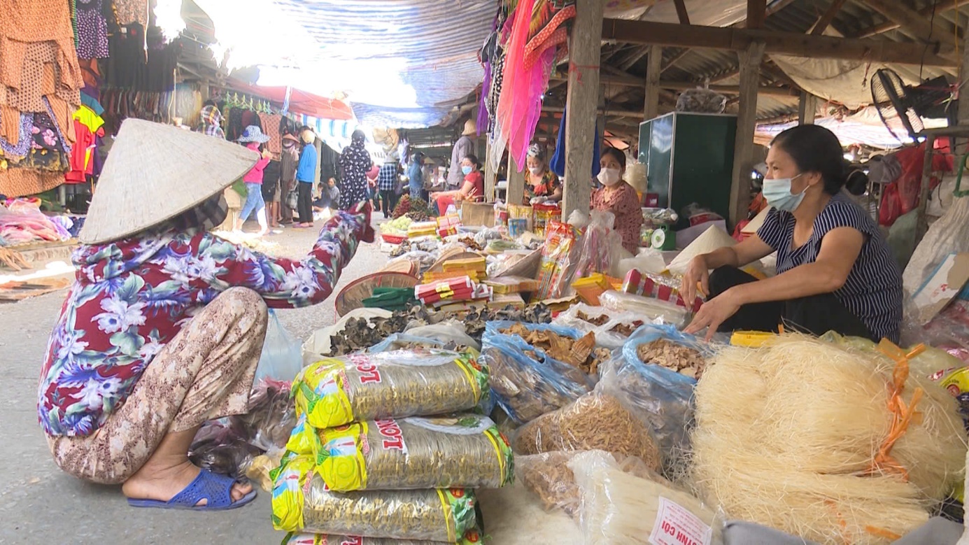 Các tiểu thương trao đổi hàng hóa tại Chợ