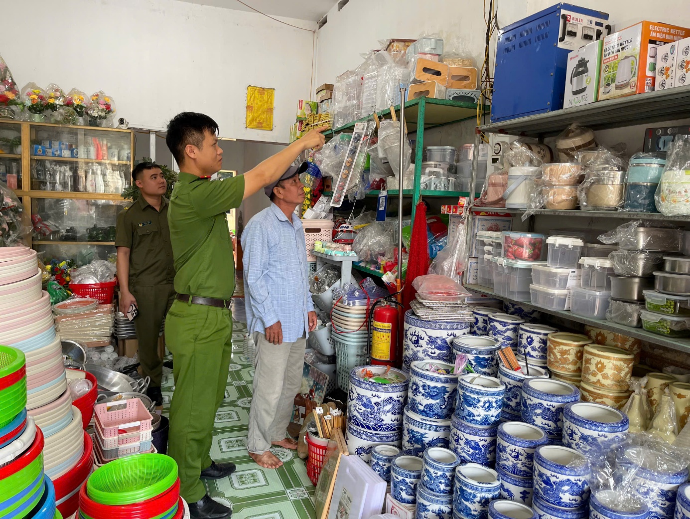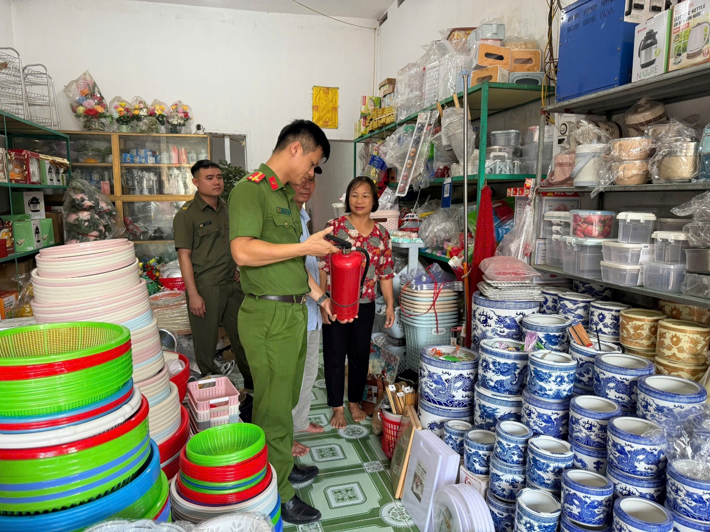 Lực lượng Công an xã đã tập trung hướng dẫn các hộ kinh doanh, tiểu thương chấp hành nghiêm các quy định của pháp luật về PCCC và CNCH; phát tờ rơi, cẩm nang về PCCC và CNCH; nhắc nhở việc bố trí hàng hóa không che chắn lối thoát nạn, không sử dụng thiết bị điện quá tải, đồng thời kiểm tra phương tiện bình chữa cháy, biển nội quy, tiêu lệnh PCCC, phương án xử lý khi có sự cố cháy nổ.