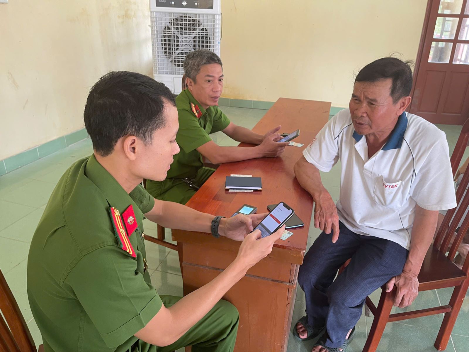 Công an xã hướng dẫn người dân khai báo lưu trú trên ứng dụng VNeID