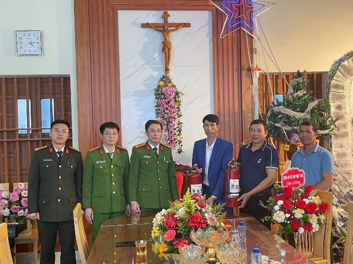 Lực lượng Công an xã đã tổ chức kiểm tra, rà soát các điều kiện bảo đảm an toàn PCCC tại nhà thờ, khu vực tổ chức lễ, tập trung hướng dẫn Hội đồng Mục vụ Giáo xứ và giáo dân sử dụng an toàn điện, nến, đèn trang trí; bố trí lối thoát nạn, phương tiện chữa cháy tại chỗ; nhắc nhở không để vật liệu dễ cháy gần nguồn nhiệt, nguồn điện. Đồng thời, Công an xã đã trao tặng bình chữa cháy xách tay cho Giáo xứ. Đây là hoạt động thiết thực, thể hiện rõ vai trò nòng cốt của lực lượng Công an cơ sở trong việc đồng hành cùng các cơ sở tôn giáo, góp phần tạo điều kiện để các hoạt động tôn giáo diễn ra thuần tuý, đúng quy định của pháp luật.