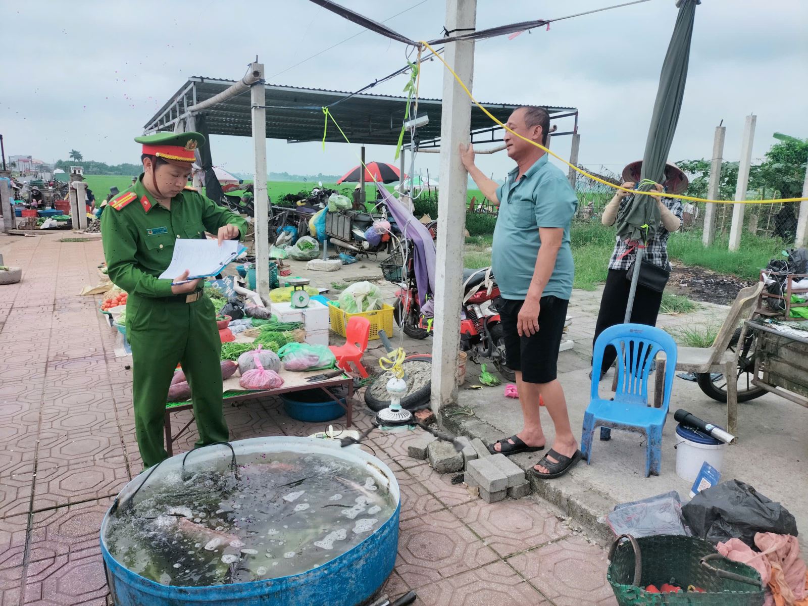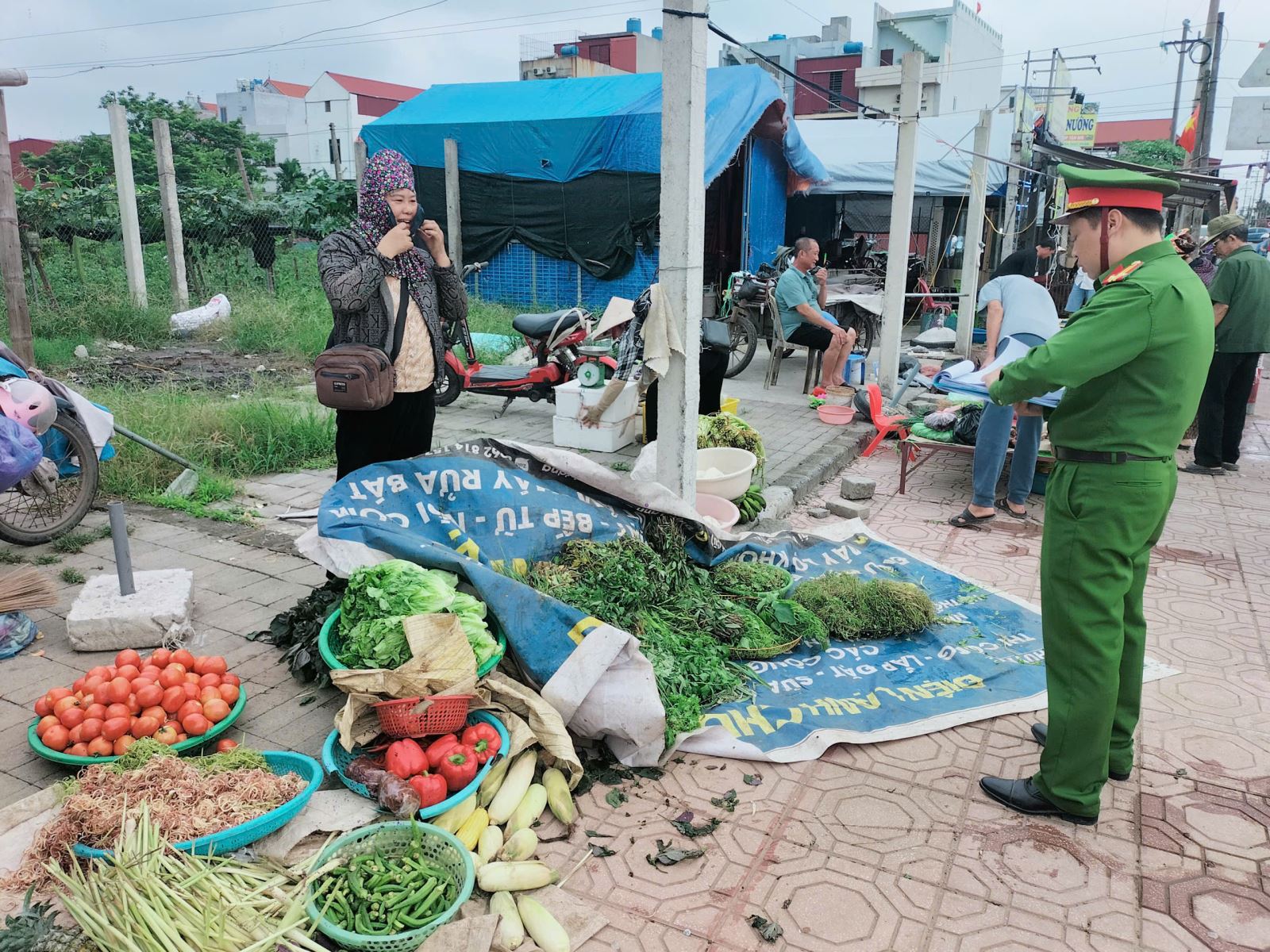Công an xã Nam Thụy Anh tuyên truyền, hướng dẫn chấp hành quy định về trật tự đô thị tại khu vực chợ