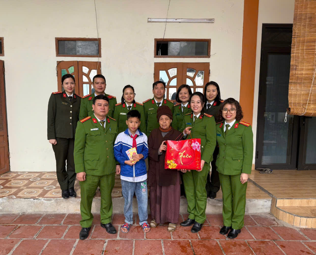 Trong không khí “Tết đến – Xuân về” của những ngày cuối năm, khi Tết Nguyên đán cổ truyền của dân tộc đang đến gần, ngày 09/02/2026, Công an xã Nam Tiên Hưng đã thành lập đoàn gồm đại diện Chi uỷ, Chỉ huy Công an xã, Đoàn Thanh niên, Chi hội phụ nữ tổ chức thăm hỏi, tặng quà cho 05 gia đình có hoàn cảnh khó khăn và 02 trẻ em mồ côi đang được nuôi dưỡng tại Chùa Trình Lâm thuộc địa phận xã Nam Tiên Hưng.