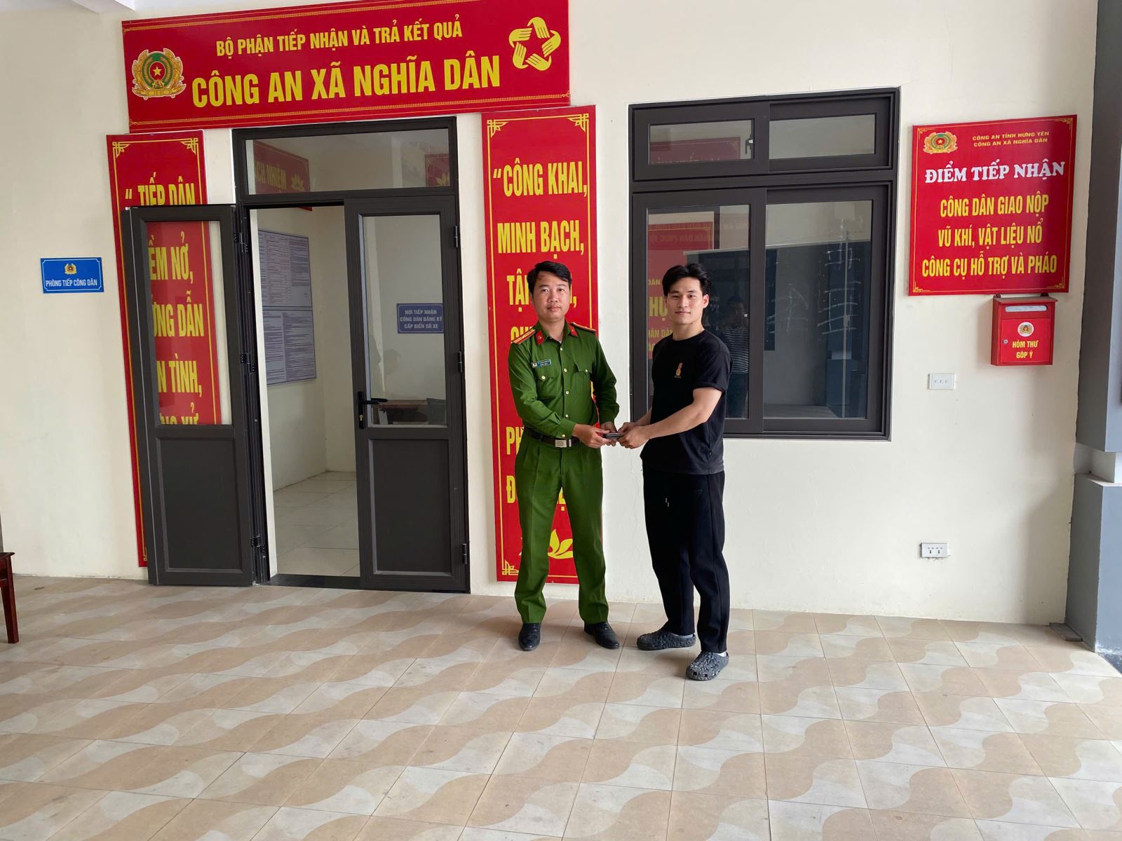 Sau khi liên hệ, Công an xã Nghĩa Dân đã tiến hành trao trả lại toàn bộ tài sản cho anh Nguyễn Ngọc Anh theo đúng quy định. Nhận lại tài sản, anh Nguyễn Ngọc Anh bày tỏ sự vui mừng và gửi lời cảm ơn tới lực lượng Công an xã Nghĩa Dân.