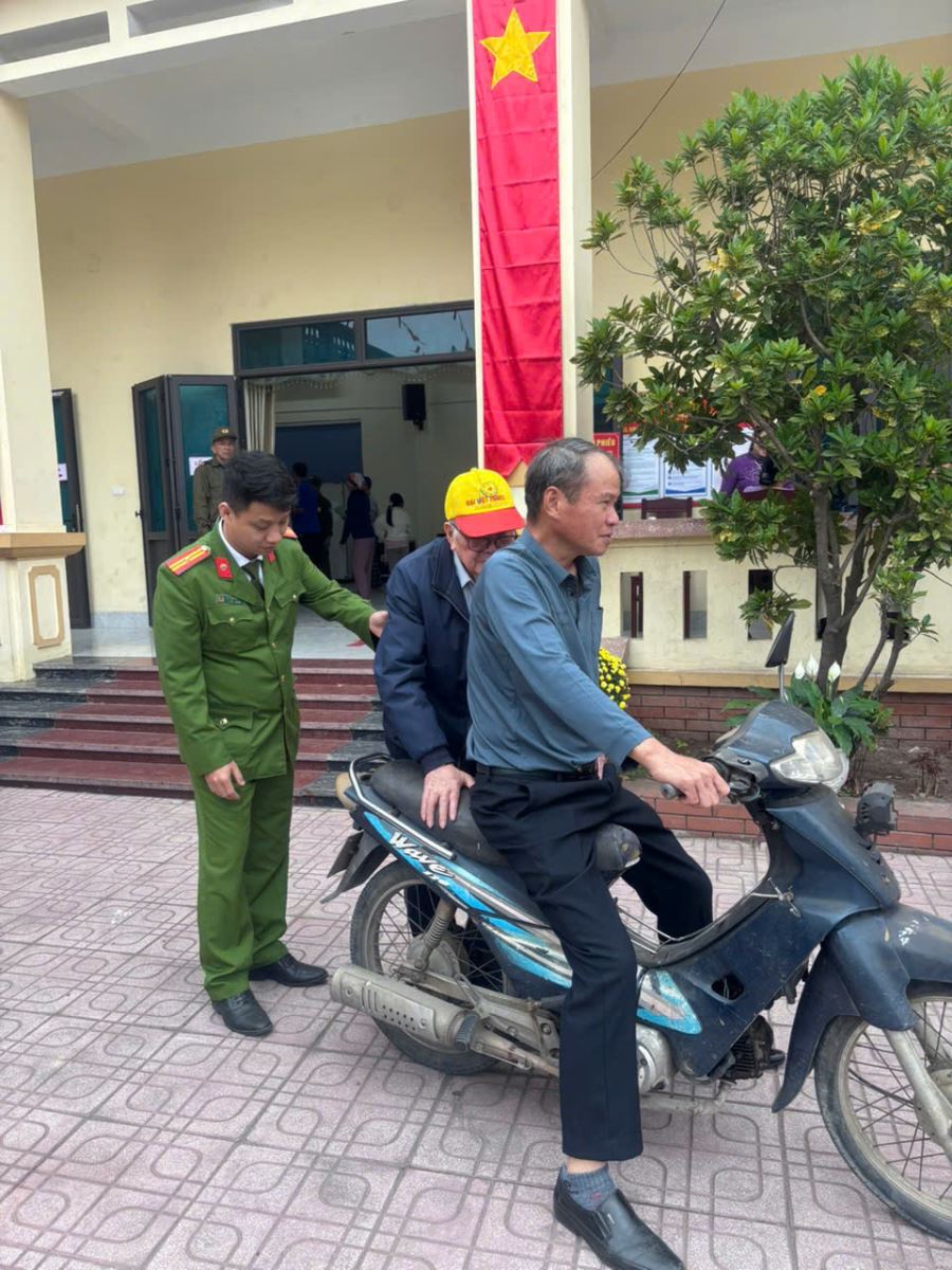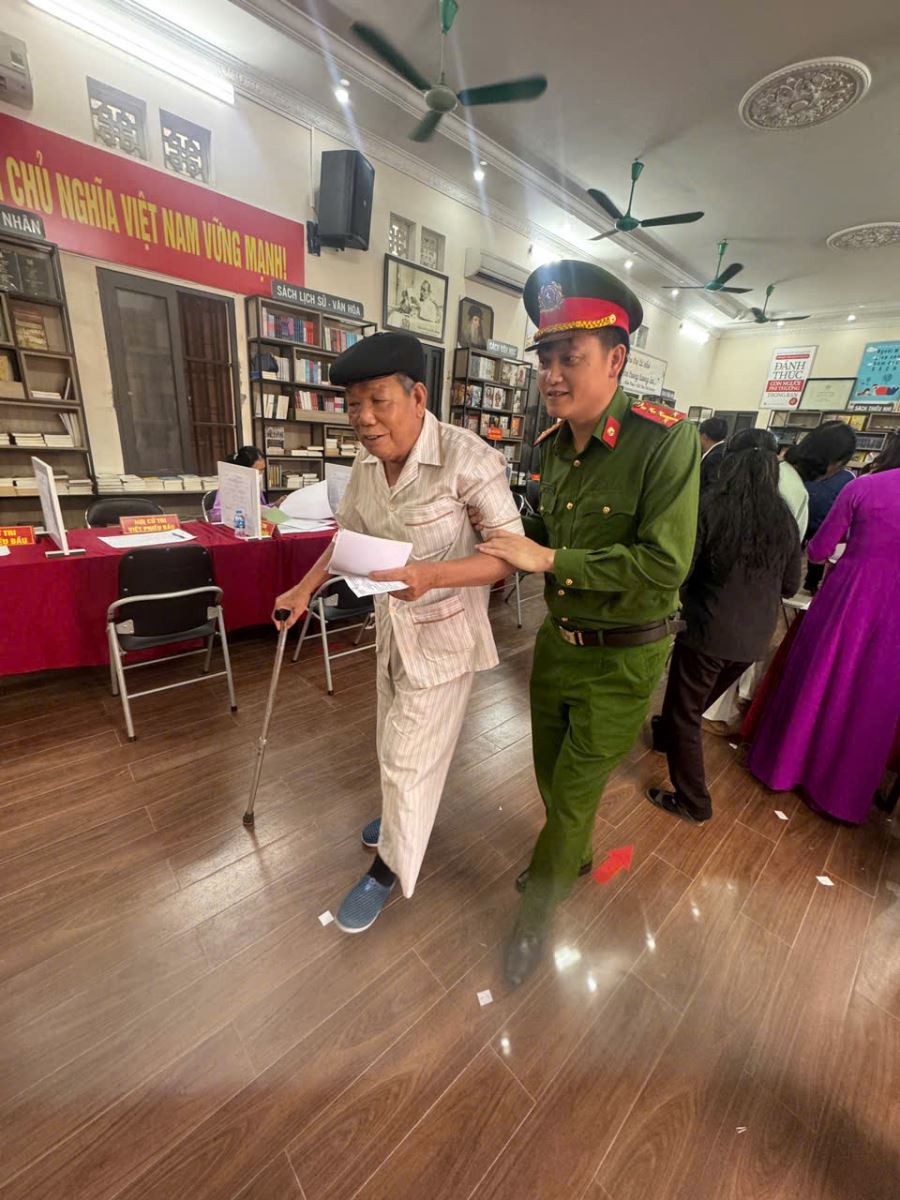 Bên cạnh đó, cán bộ, chiến sĩ Công an xã còn tích cực hỗ trợ người cao tuổi, người khuyết tật, người dân gặp khó khăn trong việc di chuyển; hướng dẫn cử tri kiểm tra danh sách, nhận phiếu và bỏ phiếu đúng quy định, góp phần tạo điều kiện thuận lợi để Nhân dân thực hiện quyền và nghĩa vụ công dân.
