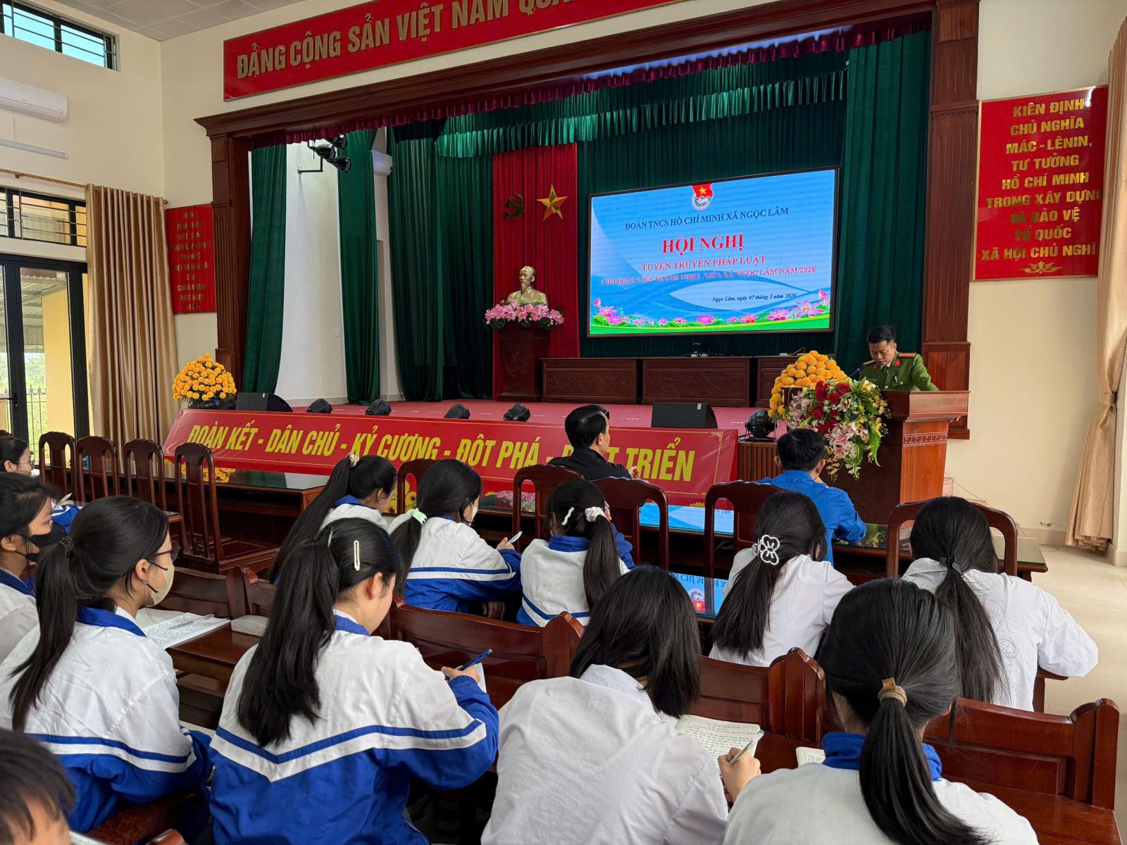 Nhằm nâng cao nhận thức, ý thức chấp hành pháp luật cho đoàn viên, thanh thiếu niên trên địa bàn, ngày 07/3/2026, Công an xã Ngọc Lâm đã phối hợp với Đoàn Thanh niên xã Ngọc Lâm tổ chức Hội nghị tuyên truyền, phổ biến pháp luật năm 2026 với sự tham gia của đông đảo đoàn viên, thanh niên và các em học sinh trên địa bàn xã.