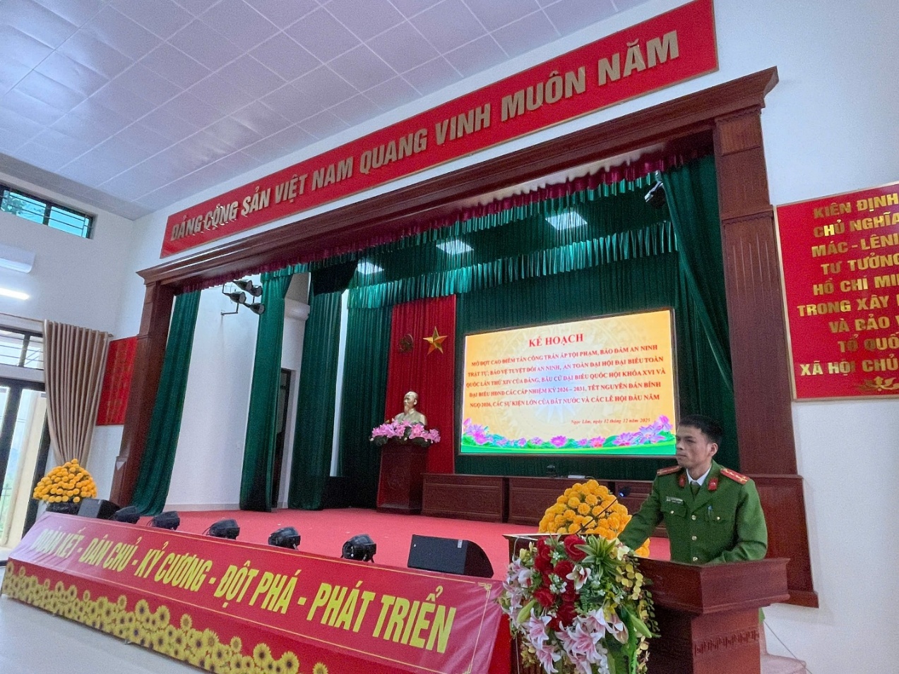 Thực hiện Kế hoạch số 1607/KH-CAT-PV01 ngày 09/12/2025 của Công an tỉnh Hưng Yên, chiều ngày 12/12/2025, Công an xã Ngọc Lâm tổ chức lễ ra quân thực hiện đợt cao điểm tấn công trấn áp tội phạm, bảo đảm an ninh, trật tự, bảo vệ tuyệt đối an ninh, an toàn Đại hội đại biểu toàn quốc lần thứ XIV của Đảng, bầu cử đại biểu Quốc hội khóa XVI, Hội đồng nhân dân các cấp nhiệm kỳ 2026 – 2031, Tết Nguyên đán Bính Ngọ 2026, các sự kiện lớn của đất nước và các lễ hội đầu năm. Dự chương trình lễ ra quân có đồng chí Nguyễn Văn Trọng - Bí thư Đảng ủy, Chủ tịch HĐND xã; đồng chí Hoàng Thanh Tùng - Chủ tịch UBND xã, các đồng chí lãnh đạo Đảng ủy, HĐND, UBND xã, các đồng chí Bí thư chi bộ, trưởng thôn cùng toàn thể cán bộ, chiến sĩ Công an xã và lực lượng An ninh, trật tự ở cơ sở xã Ngọc Lâm.