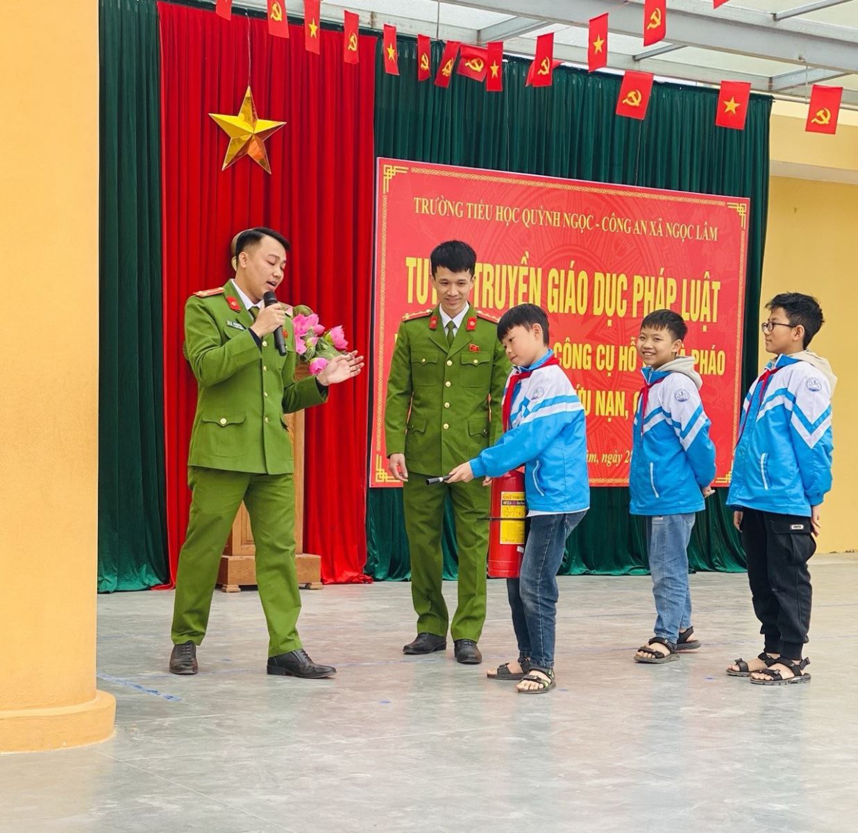 Ngày 28/01/2026, tại Trường Tiểu học Quỳnh Ngọc, Công an xã Ngọc Lâm phối hợp với nhà trường tổ chức buổi tuyên truyền kiến thức pháp luật về quản lý, sử dụng vũ khí, vật liệu nổ, công cụ hỗ trợ và pháo, công tác phòng cháy chữa cháy và cứu nạn cứu hộ cho trên 500 cán bộ, giáo viên và học sinh nhà trường.
