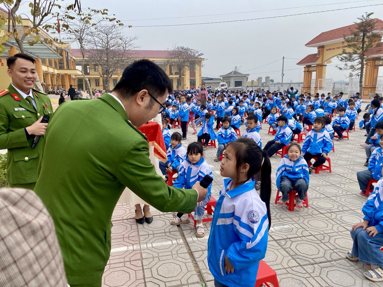 Công an xã giao lưu cùng học sinh bằng các câu hỏi liên quan đến nội dung tuyên truyền
