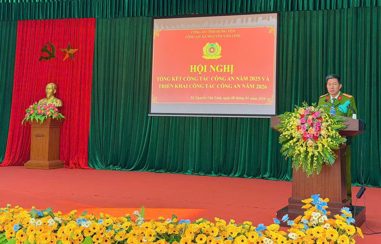 Ngày 08/01/2026, Công an xã Nguyễn Văn Linh tổ chức Hội nghị tổng kết công tác Công an và phong trào thi đua “Vì an ninh Tổ quốc” năm 2025; triển khai công tác Công an và phát động phong trào thi đua “Vì an ninh Tổ quốc” năm 2026. Dự và chỉ đạo Hội nghị có đồng chí Đại tá Cao Minh Tuấn - Phó Giám đốc Công an tỉnh; đồng chí Trần Quốc Việt - Bí thư Đảng uỷ, Chủ tịch Hội đồng nhân dân xã (HĐND); đồng chí Đỗ Xuân Chương – Phó bí thư thường trực Đảng ủy; đồng chí Nguyễn Hải Phong - Phó Bí thư Đảng uỷ, Chủ tịch Uỷ ban nhân dân xã (UBND); đại diện Lãnh đạo một số phòng nghiệp vụ Công an tỉnh; đại diện các phòng, ban ngành, đoàn thể xã, lực lượng tham gia bảo vệ an ninh trật tự ở cơ sở cùng toàn thể lãnh đạo, chỉ huy và cán bộ, chiến sĩ Công an xã Nguyễn Văn Linh.