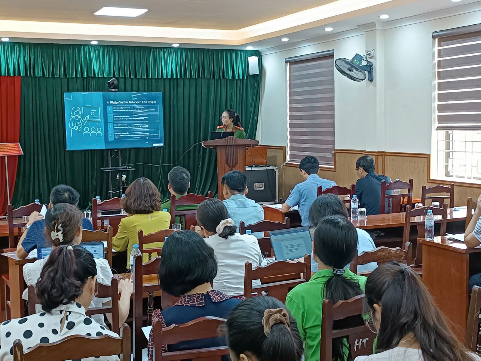 Cán bộ Công an xã tuyên truyền công tác cấp căn cước và tài khoản định danh đến nhà trường