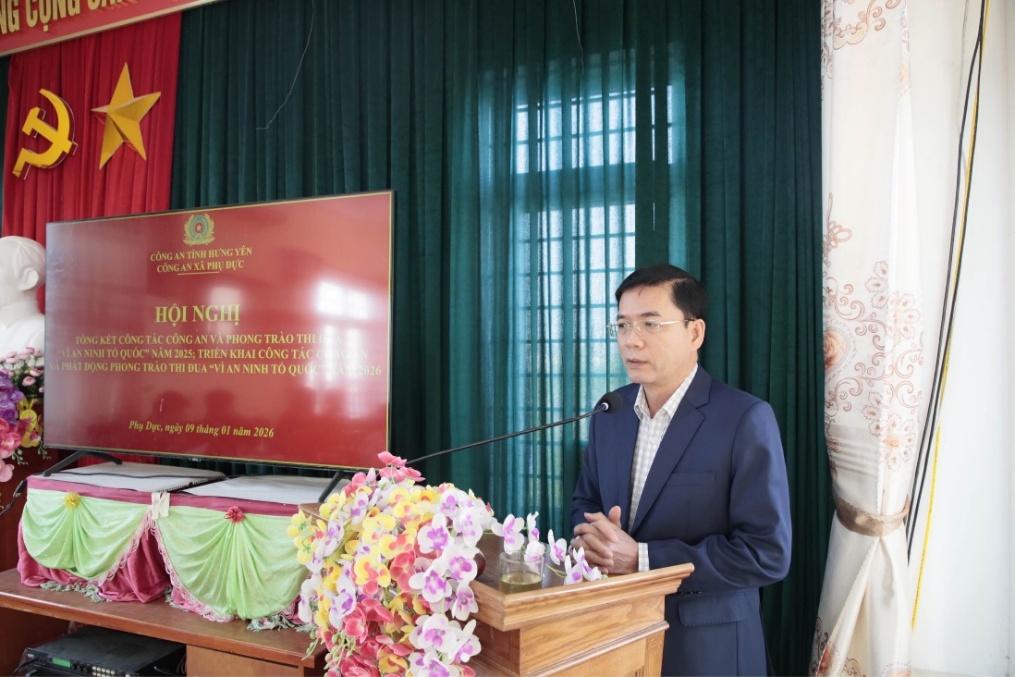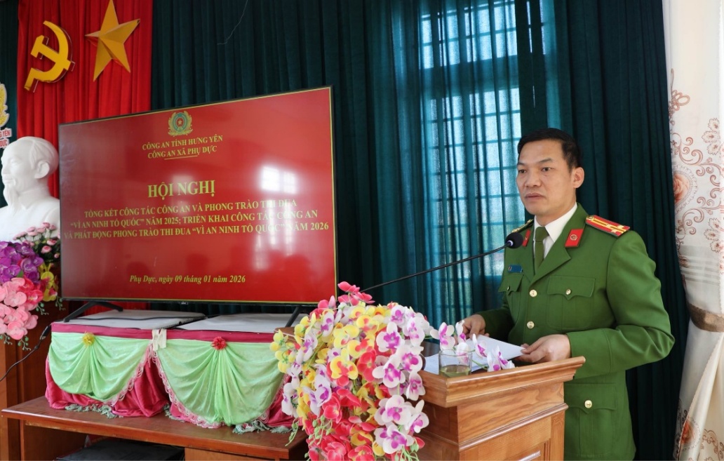 Chiều ngày 09/01/2026, Công an xã Phụ Dực tổ chức Hội nghị tổng kết công tác Công an và phong trào thi đua “Vì an ninh Tổ quốc” năm 2025; triển khai nhiệm vụ công tác Công an và phát động phong trào thi đua “Vì an ninh Tổ quốc” năm 2026.