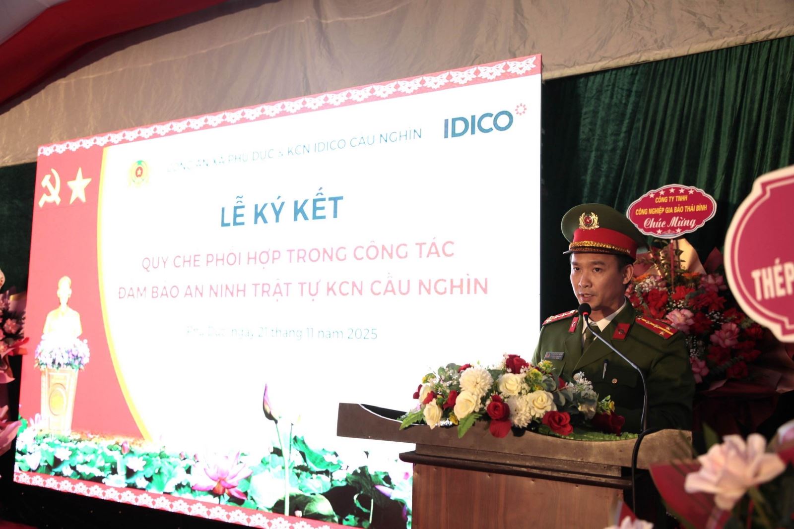 Chiều ngày 21/11/2025, Công an xã Phụ Dực và Ban Quản lý Khu công nghiệp Cầu Nghìn đã tổ chức thành công Lễ ký kết Quy chế phối hợp trong công tác đảm bảo an ninh, trật tự tại Khu công nghiệp Cầu Nghìn. Dự và chỉ đạo tại Lễ ký kết có đại diện các Phòng nghiệp vụ Công an tỉnh, đại diện các phòng chức năng của Ban quản lý Khu kinh tế và các khu công nghiệp tỉnh Hưng Yên, các đồng chí trong Thường trực Đảng ủy xã, các đồng chí Ủy viên Ban Thường vụ Đảng ủy, đại diện các phòng, ban xã Phụ Dực cùng chỉ huy, cán bộ Công an xã và đại diện các công ty, doanh nghiệp trên địa bàn.