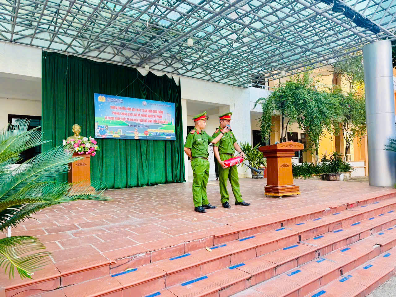 Tại buổi tuyên truyền, các bạn học sinh còn được hướng dẫn các kỹ năng cơ bản khi xảy ra cháy, cách sử dụng bình chữa cháy, cách thoát hiểm an toàn, qua đó hình thành thói quen cẩn trọng, không đốt rác bừa bãi, không nghịch lửa, không sử dụng các thiết bị điện thiếu an toàn trong trường học và gia đình.