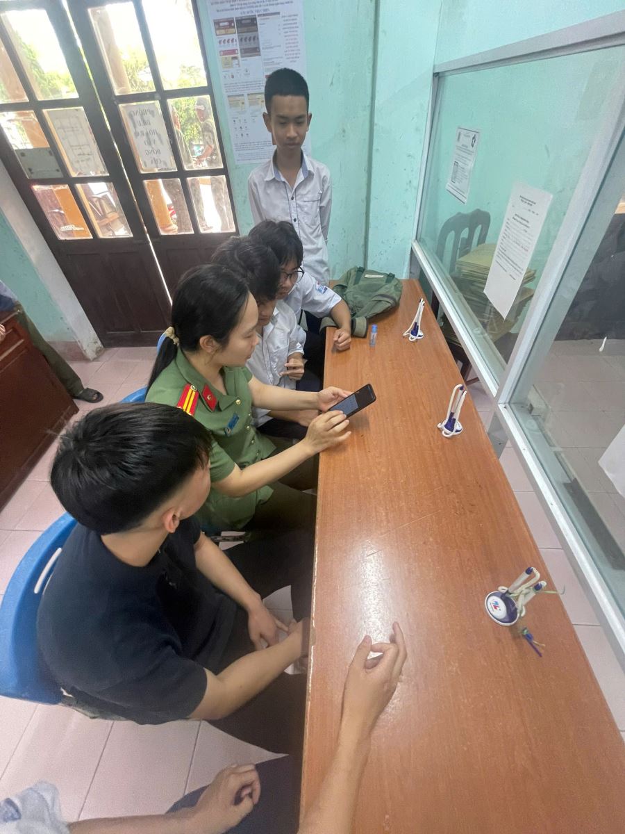 Công an xã Quang Lịch hướng dẫn học sinh làm định danh điện tử mức 2 phục vụ kỳ tuyển sinh 2026-2027