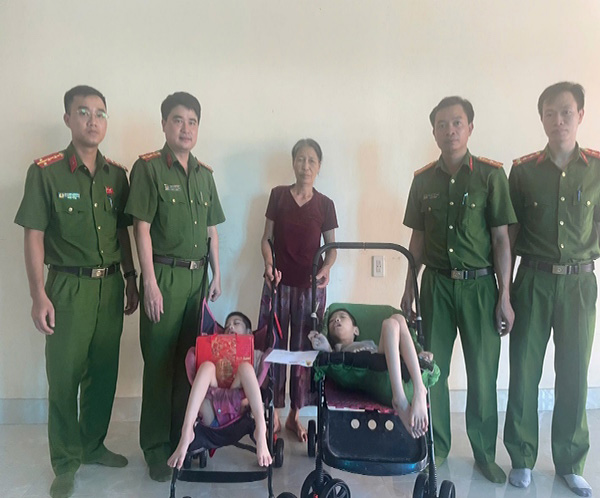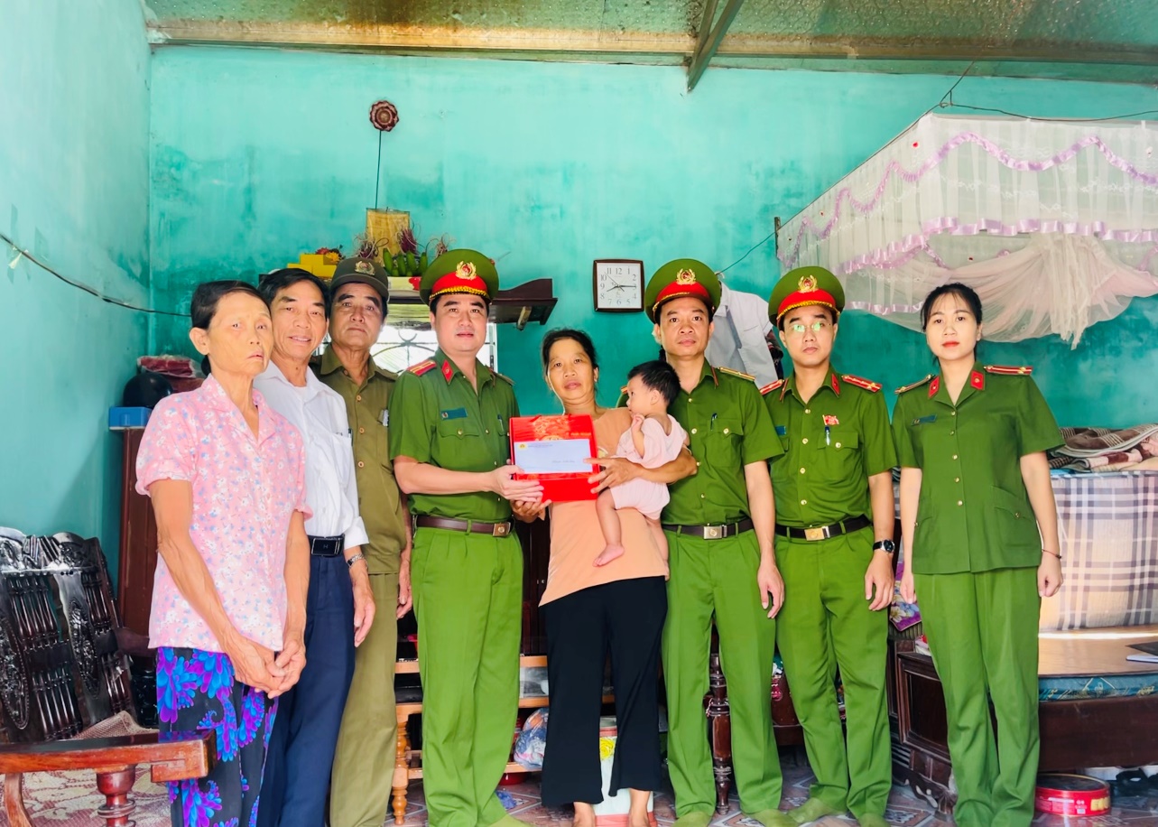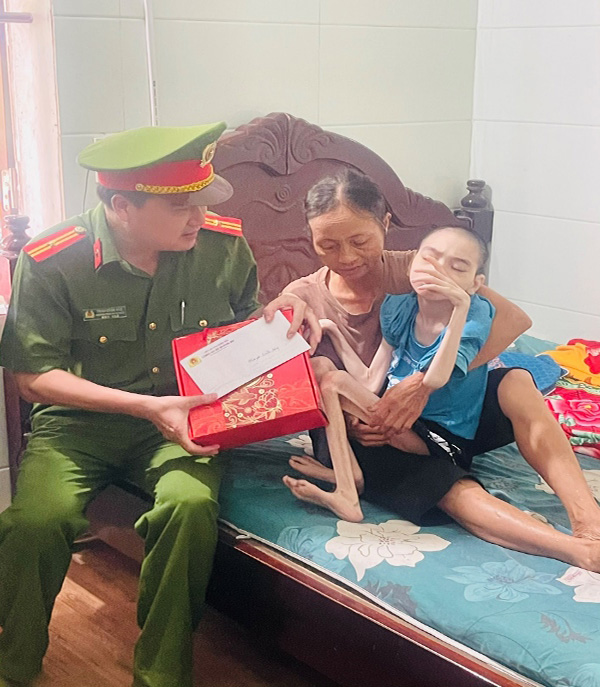 Công an xã Quỳnh An tặng quà các em nhỏ bị khuyết tật trên địa bàn nhân dịp Tết Trung thu