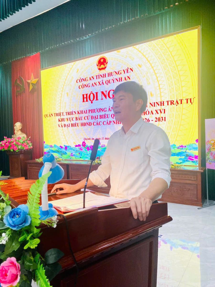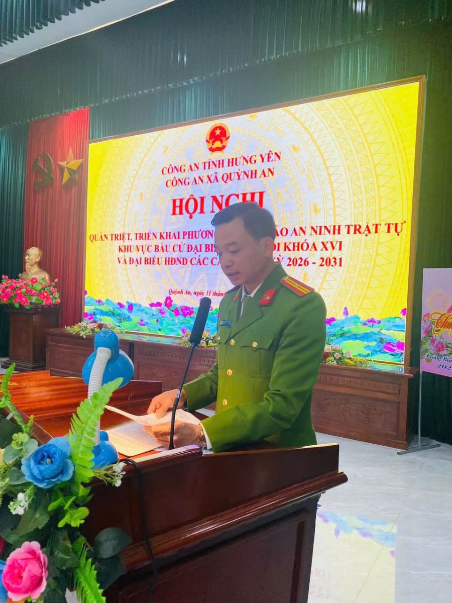 Chiều ngày 11/03/2026, Công an xã Quỳnh An tổ chức Hội nghị triển khai phương án đảm bảo an ninh, trật tự phục vụ cuộc bầu cử đại biểu Quốc hội khóa XVI và đại biểu Hội đồng nhân dân các cấp nhiệm kỳ 2026-2031. Tham dự hội nghị có đồng chí Nguyễn Minh Thắng, Phó Bí thư thường trực Đảng ủy, đồng chí Phạm Hồng Vương – Phó Bí thư Đảng ủy, Chủ tịch UBND xã, các đồng chí thuộc các phòng chức năng được Công an tỉnh tăng cường, cán bộ chiến sỹ Công an xã và lực lượng ANTT ở cơ sở.