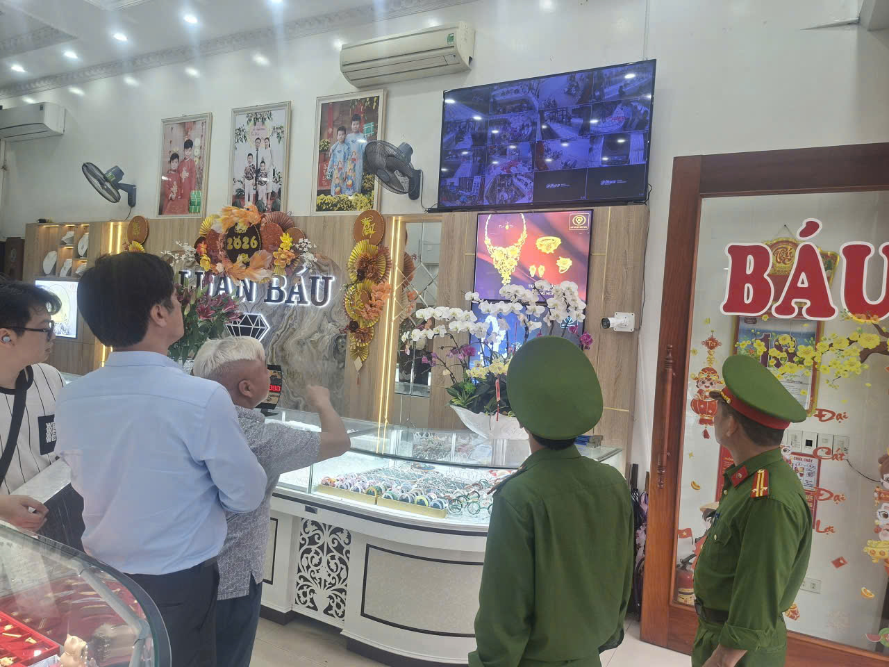 Công an xã phối hợp với cơ sở kinh doanh vàng, bạc kiểm tra hệ thống an ninh, giám sát