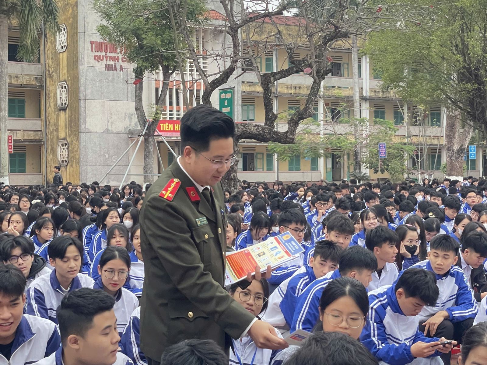 Sáng ngày 02/02/2026, Công an xã Quỳnh Phụ tổ chức tuyên truyền, phát tờ rơi phổ biến pháp luật về an ninh mạng; quản lý, sử dụng vũ khí, vật liệu nổ, công cụ hỗ trợ, pháo nhân dịp Tết Nguyên đán Bính Ngọ 2026 cho hơn 2500 cán bộ, giáo viên, học sinh trường THPT Quỳnh Côi.