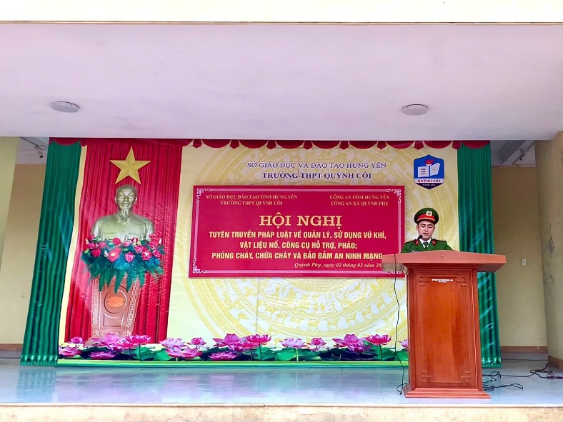 Tại buổi tuyên truyền, Công an xã Quỳnh Phụ đã tập trung phổ biến các quy định về quản lý, sử dụng vũ khí, vật liệu nổ, công cụ hỗ trợ và pháo; chỉ rõ những hành vi bị nghiêm cấm và các chế tài xử lý đối với các trường hợp vi phạm. Từ đó, Công an xã Quỳnh Phụ tuyên truyền, nhắc nhở các em học sinh không tàng trữ, vận chuyển, mua bán, sử dụng trái phép pháo nổ, tự nguyện giao nộp cho cơ quan Công an các loại vũ khí, vật liệu nổ, công cụ hỗ trợ.