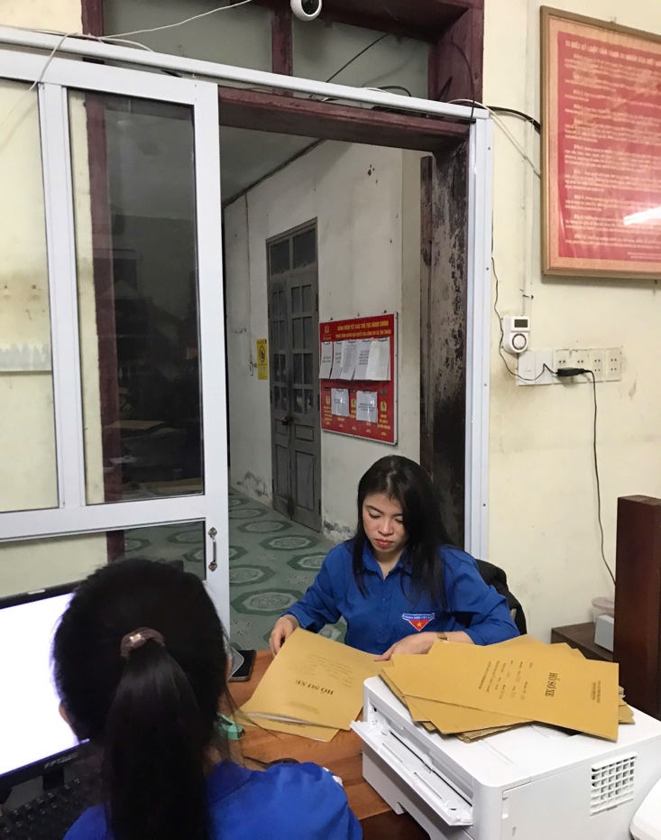 Đoàn viên, thanh niên tham gia hỗ trợ công tác số hoá hồ sơ đăng ký xe