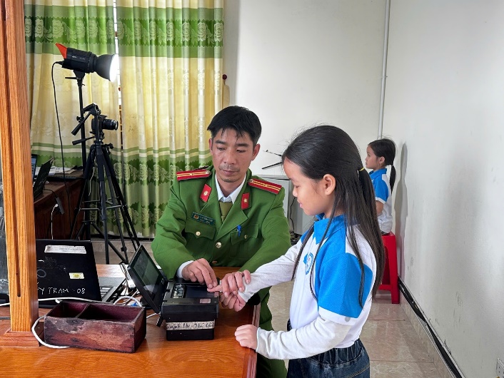 Công an xã Tân Tiến cấp căn cước cho học sinh