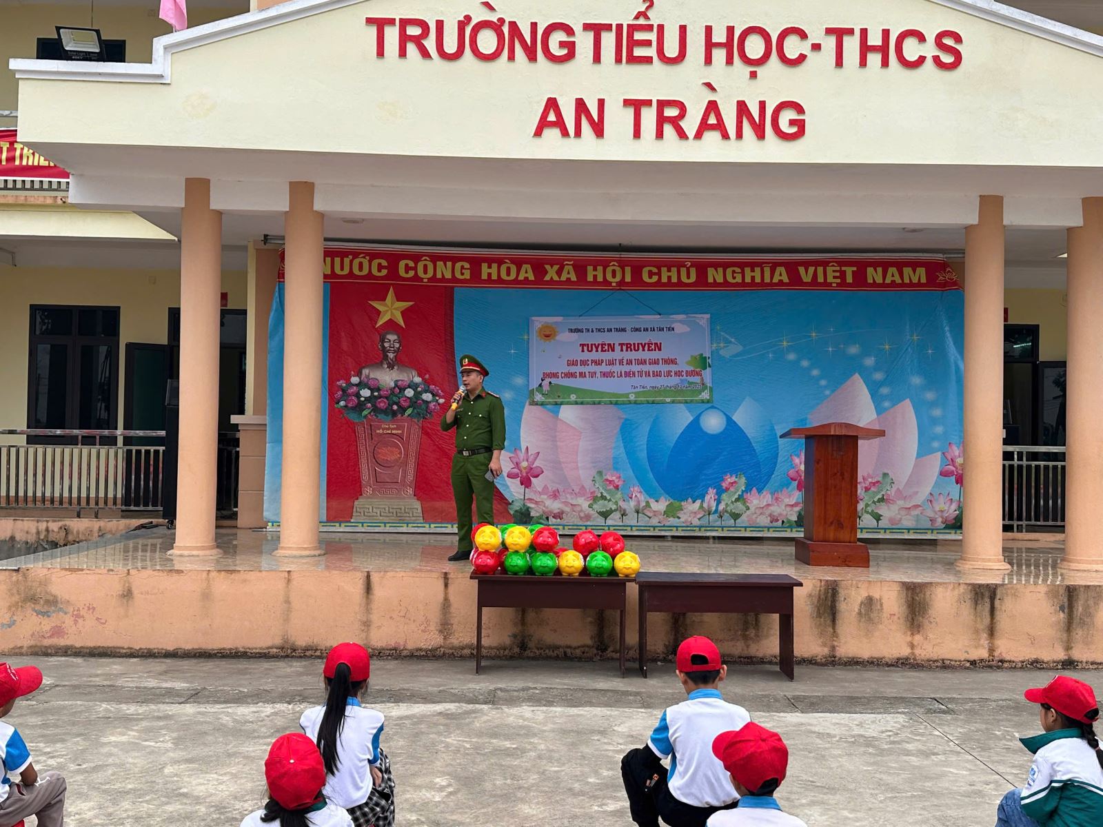 Nhằm nâng cao nhận thức, ý thức chấp hành pháp luật của học sinh trong công tác bảo vệ an ninh quốc gia, bảo đảm trật tự an toàn xã hội và trật tự, an toàn giao thông (TTATGT) trên địa bàn, trong tháng 10/2025, Công an xã Tân Tiến đã triển khai nhiều hoạt động tuyên truyền, giáo dục pháp luật tại các trường học.