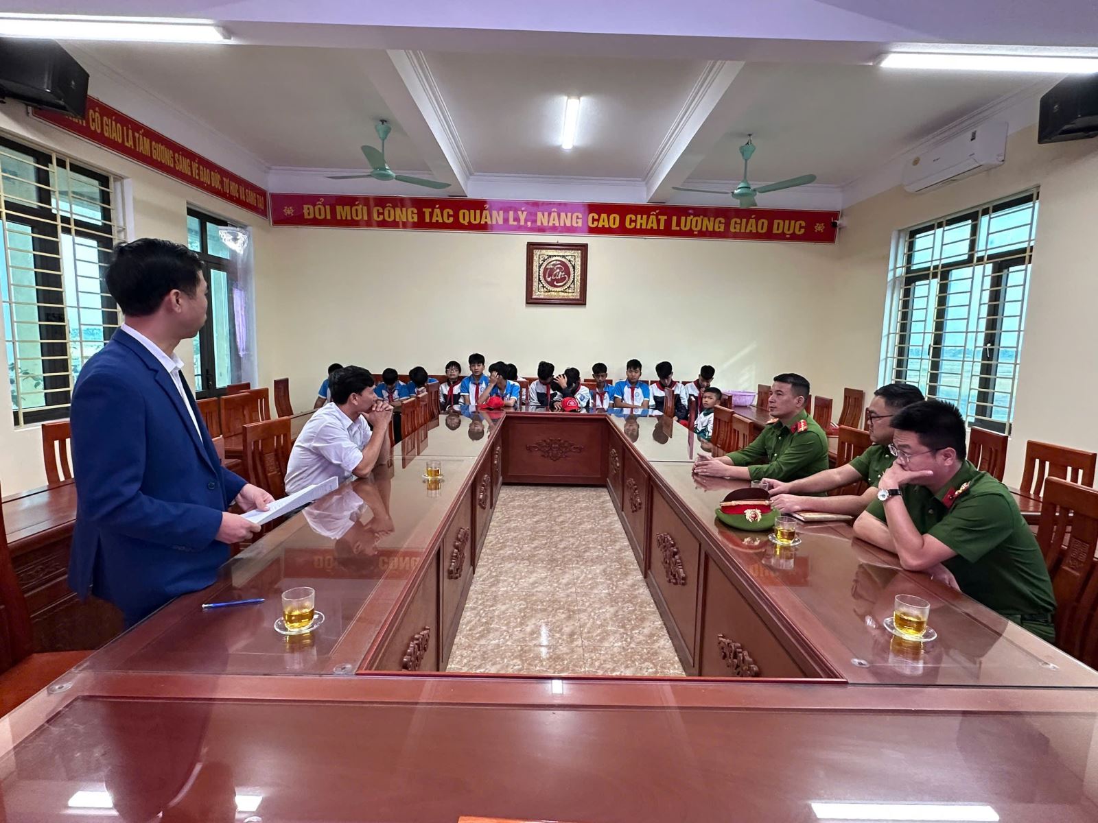 Công an xã Tân Tiến trao đổi với phía nhà trường