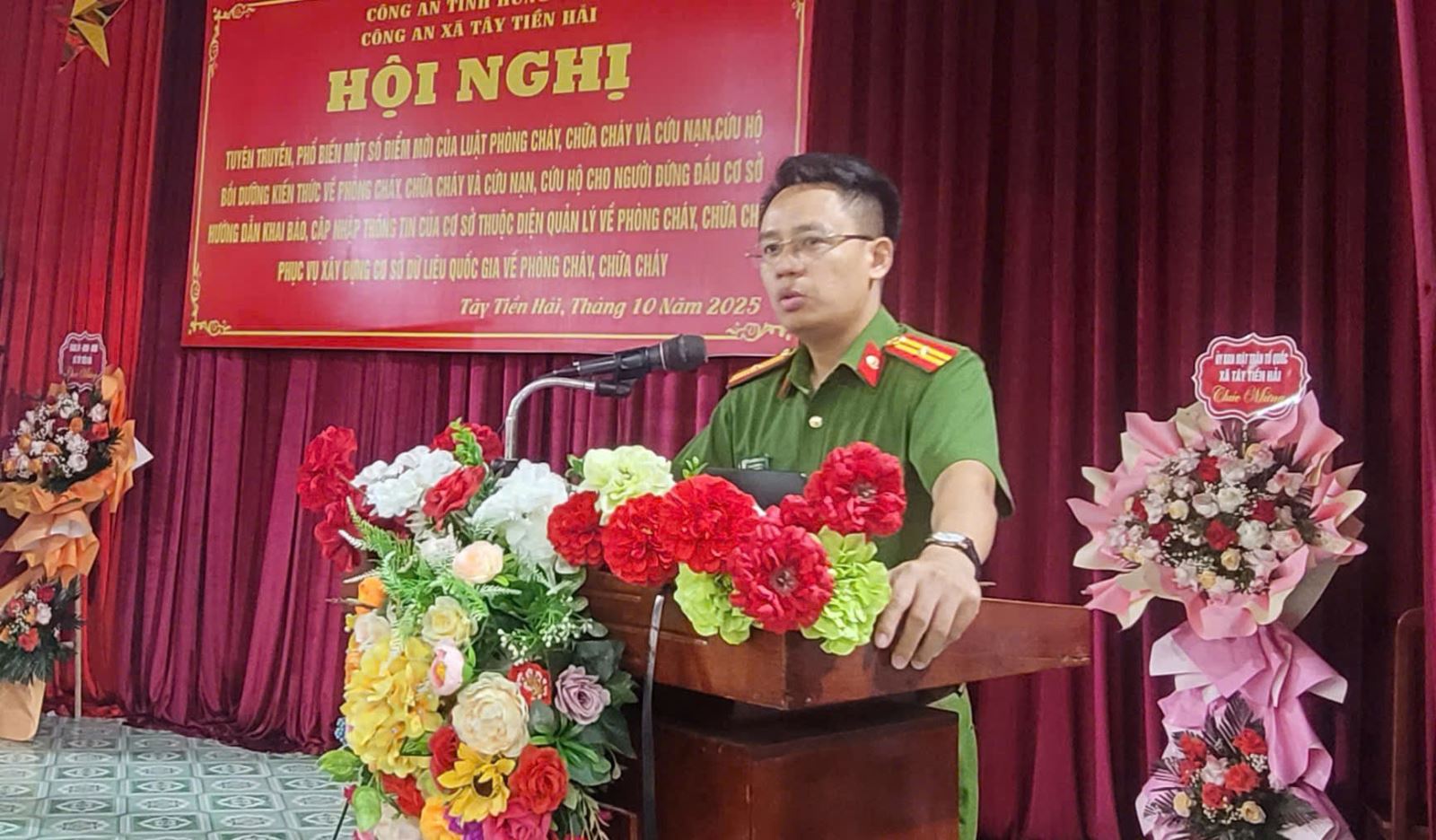 Chiều ngày 13/10/2025, Công an xã Tây Tiền Hải đã phối hợp với phòng Cảnh sát PCCC và CNCH - Công an tỉnh Hưng Yên tổ chức hội nghị tập huấn nghiệp vụ PCCC và CNCH cho hơn 200 đại biểu là các tổ chức, cá nhân, hộ kinh doanh, cơ sở tôn giáo và cơ sở giáo dục trên địa bàn xã.