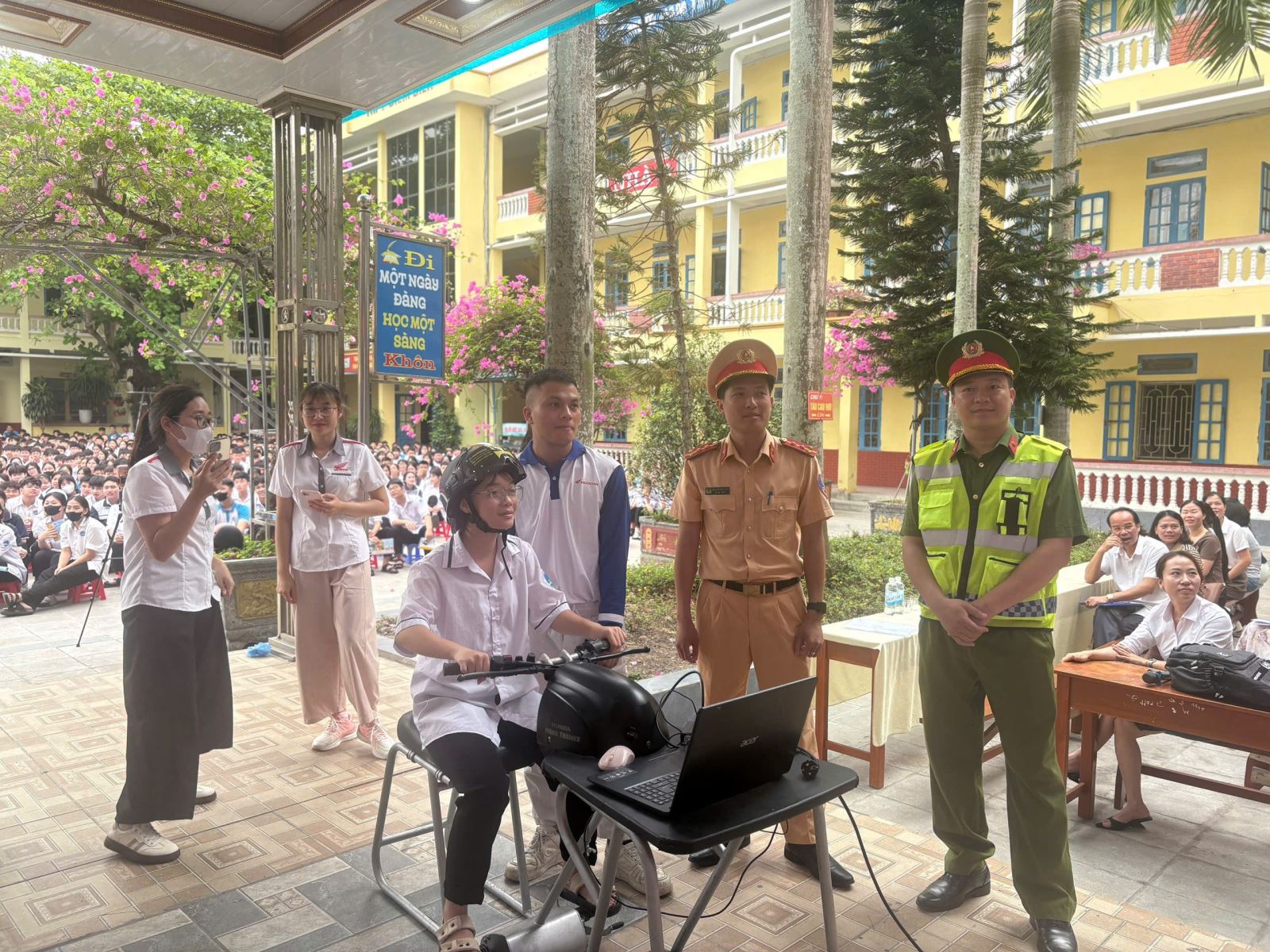 Tại chương trình, đội ngũ báo cáo viên là cán bộ chuyên trách về Trật tự an toàn giao thông của Công an xã và Phòng Cảnh sát giao thông đã phổ biến đầy đủ, rõ ràng các quy định trọng tâm của Luật Trật tự, An toàn giao thông Đường bộ, nhấn mạnh các nội dung liên quan trực tiếp tới học sinh như: đội mũ bảo hiểm đạt chuẩn, không chở quá số người, không điều khiển phương tiện khi chưa đủ điều kiện, không vi phạm nồng độ cồn, an toàn khi sang đường… Đặc biệt, phần tuyên truyền được lồng ghép với những tình huống điển hình về vi phạm giao thông và hậu quả thực tế, giúp học sinh dễ dàng hình dung và rút ra bài học sâu sắc về trách nhiệm pháp luật khi tham gia giao thông.