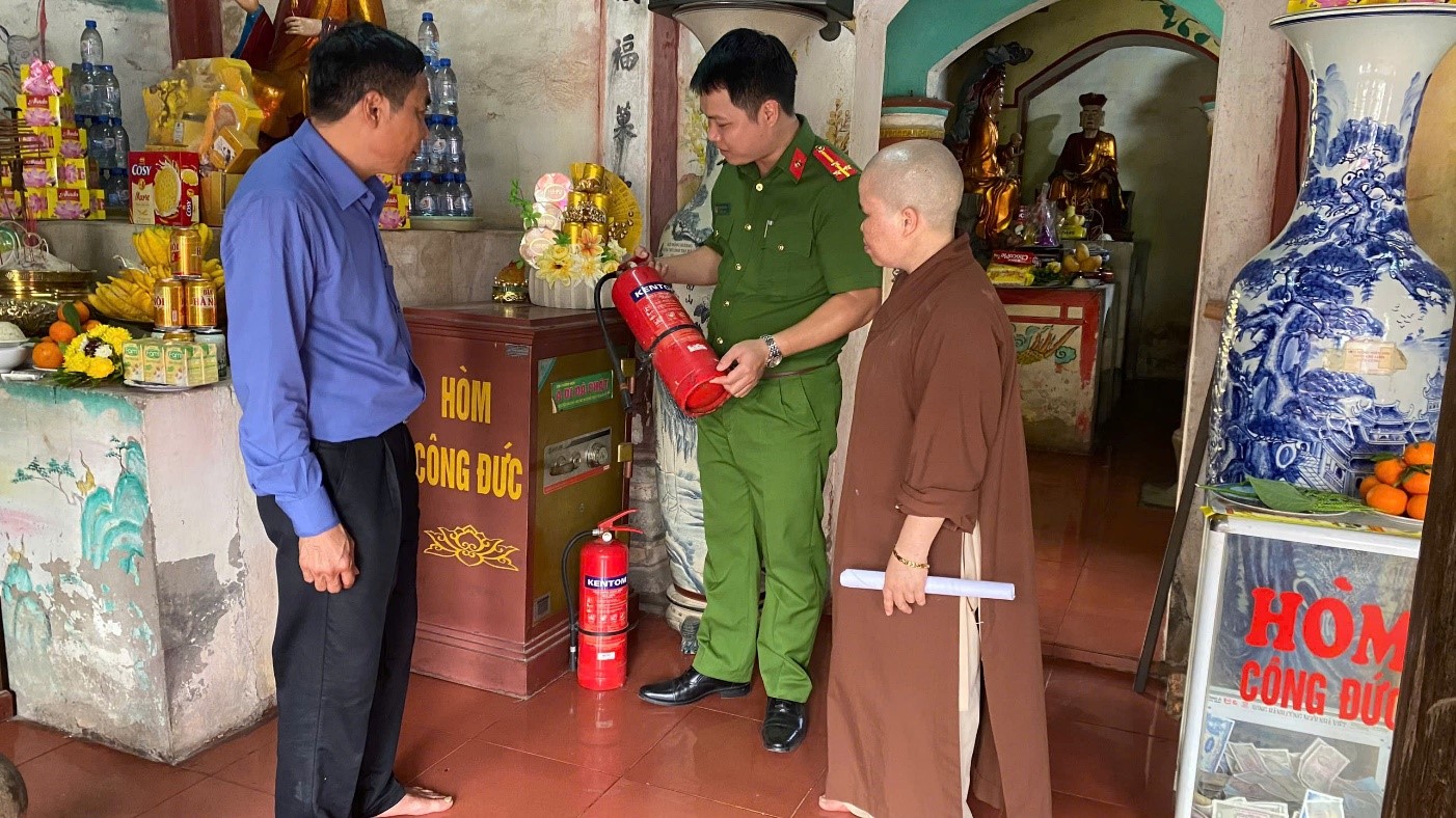 Công an xã kiểm tra, hướng dẫn công tác PCCC tại chùa Chí Linh